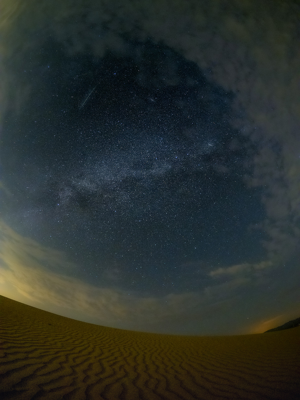 I thought, maybe I’ll shoot a time0lapse of the stars. Winds picked up to plus 15 MPH and the sand took flight. I had to stop working with the Galactic Core, or my gear would have been trashed.