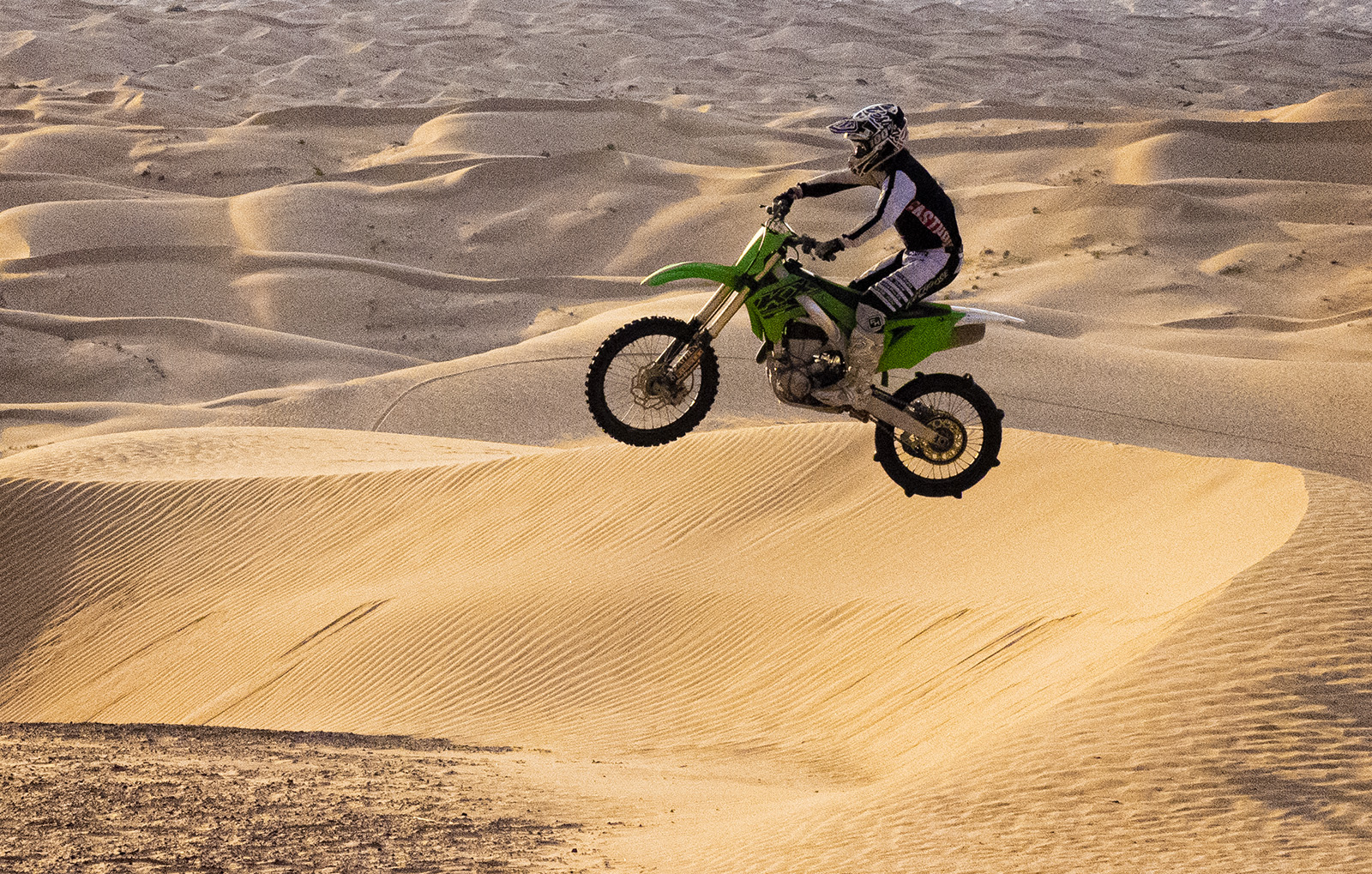 Since I had seen the way the biker took the dunes, I was ready for catching some action shots. Being able to anticipate action is three quarters of getting solid images. It could only have been better if I could direct where and when he was going to be.