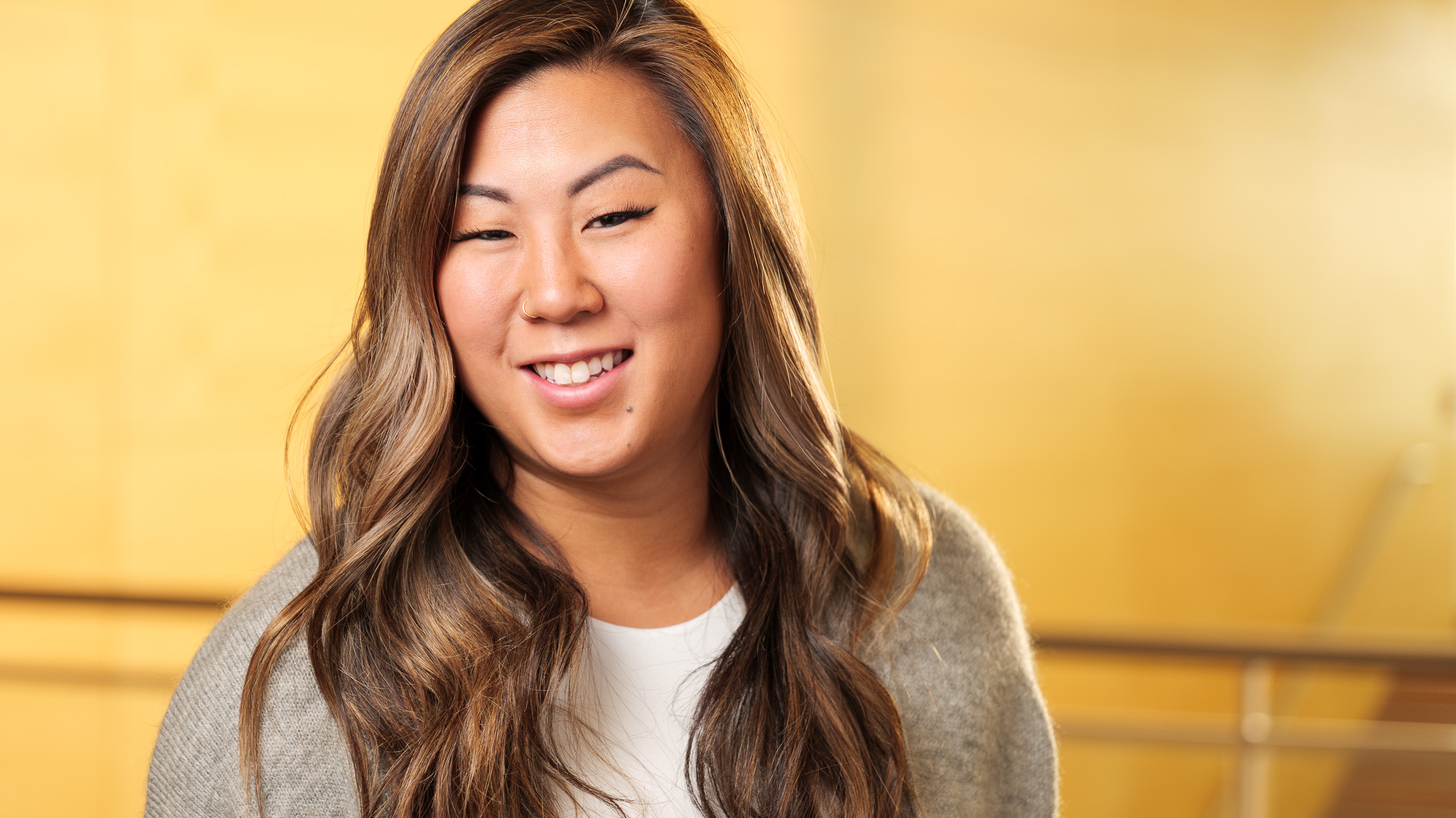 The problem is that the color from the window and the flash is quite blue, which doesn’t go with the warm and friendly light I’ve had in the background other days I’ve made headshots there, so they wouldn’t match well with other headshots for the group.