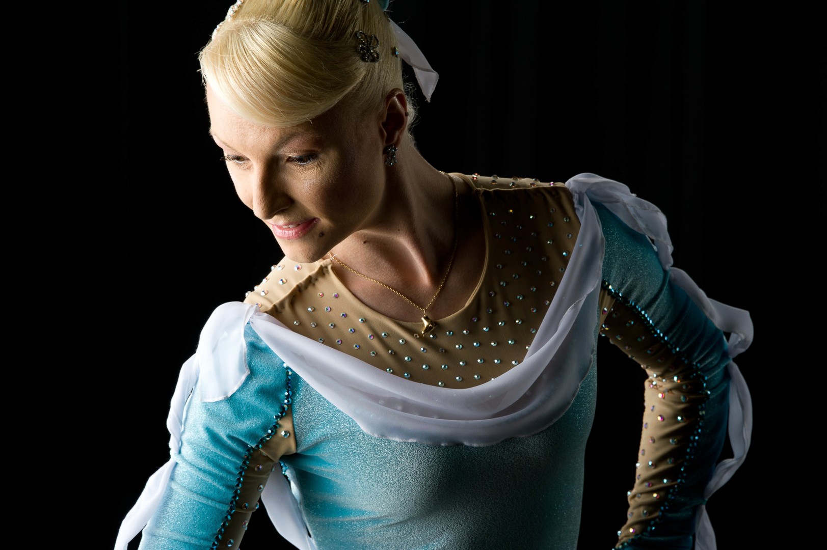 I wanted to offer portraits that showed off the drama they were performing on the ice. Using a black background makes it easy to make dramatic-looking pictures. One light to the side on black is practically the definition of dramatic.