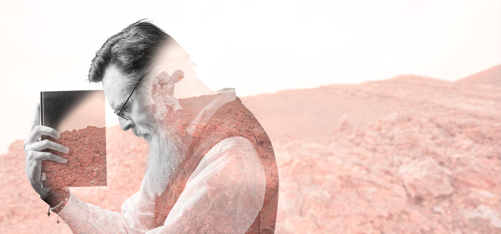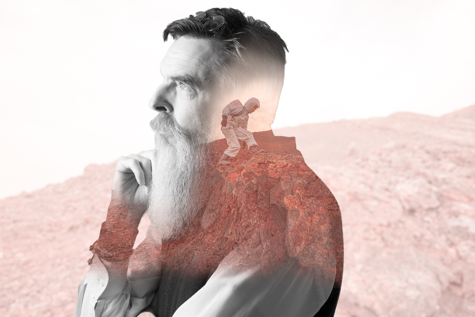 For the background image, I imagined an astronaut on Mars looking solitary, but not stationary. I thought that if the astronaut was standing still and the professor was, too, then the whole thing would appear very static.