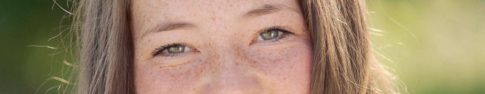 “So what!” you say. Well, black shirts don’t reflect, but orange shirts happen to reflect orange light. Check it out in this young lady’s eyes.