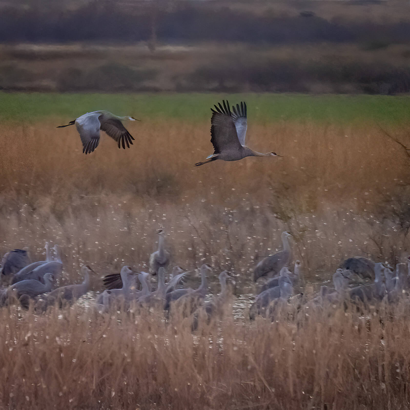 Tightening up on your subject can help tell the story a bit better. In this case, I went with a square crop as my main subject of the two sandhill cranes were getting lost. Almost done.