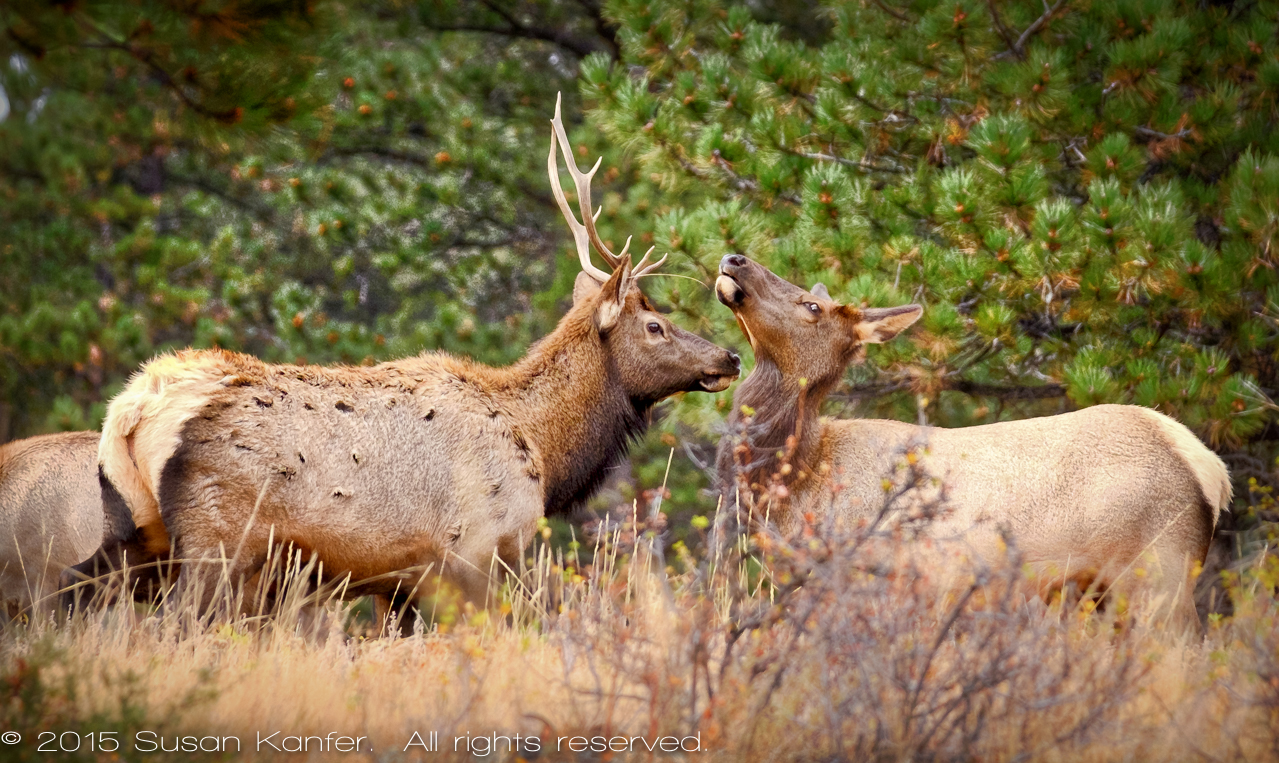 The late afternoons and early evenings can be amazing in the fall, so pace yourself and don’t get too tired early on. The reason is that it is mating season for the elk. Bull elks with their harems move through the woods and the meadows. We watched and listened for hours.