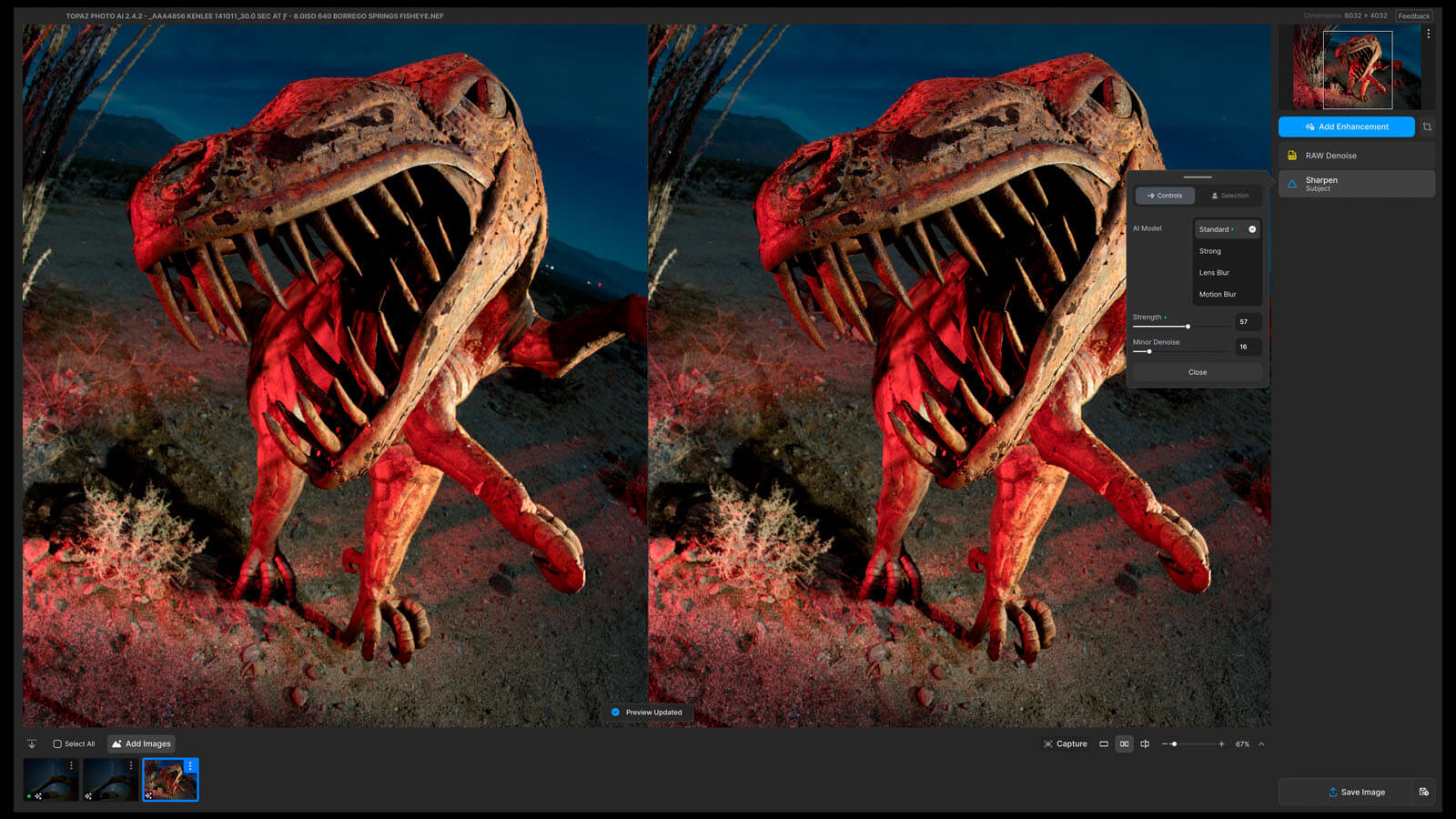 Using Topaz Photo AI V2: Velociraptor sculpture