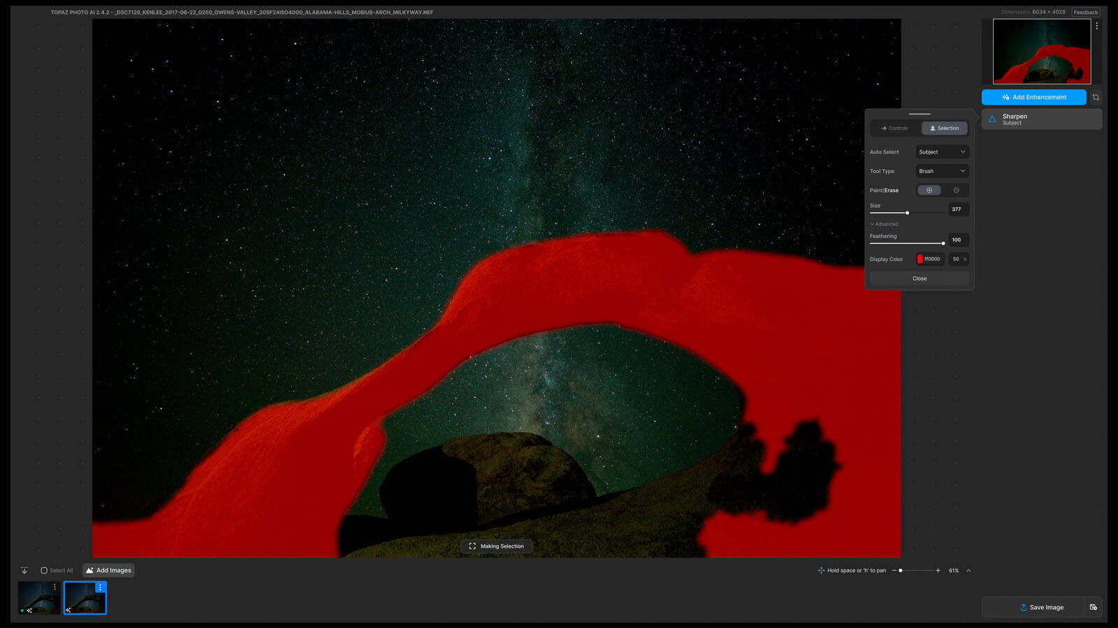 Like before, Photo AI automatically selected a mask, this time automatically choosing “Subject.” It got most of Mobius Arch, as you can see.