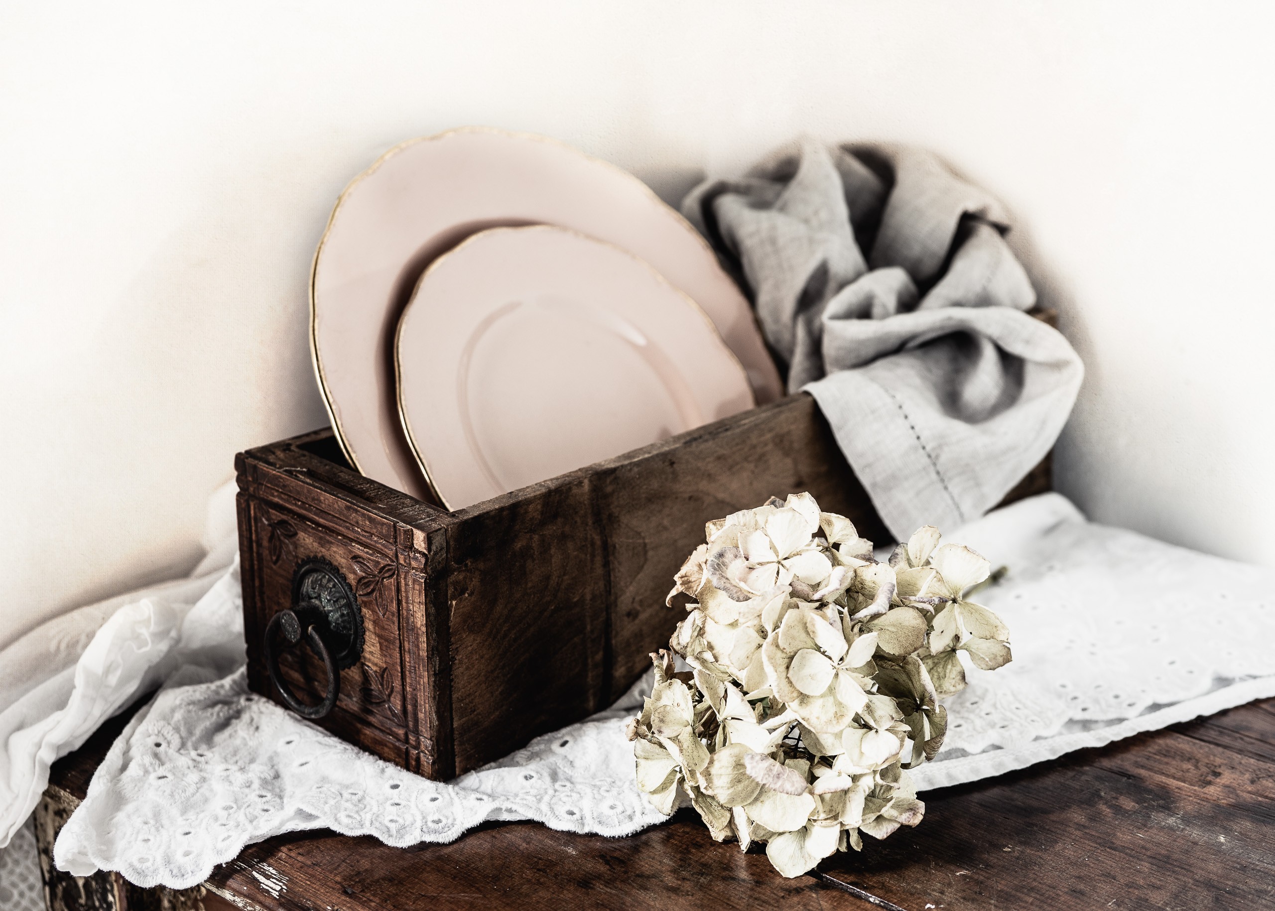 It is the same with still life photography — actually, I believe it is even more important in some ways. Each piece that I shoot has a special meaning, each item lovingly curated. As I frequently photograph vintage or old country charm scenes, it is often a memory that is conjured from my past, even places I have visited. Old family photos, trinkets … I even have china and silverware passed down from grandparents. Sometimes it is just an object that speaks to me when I pick it up, there is a texture, a tangible presence to the item. I can see in my mind’s eye how it will work with other pieces in my collection.