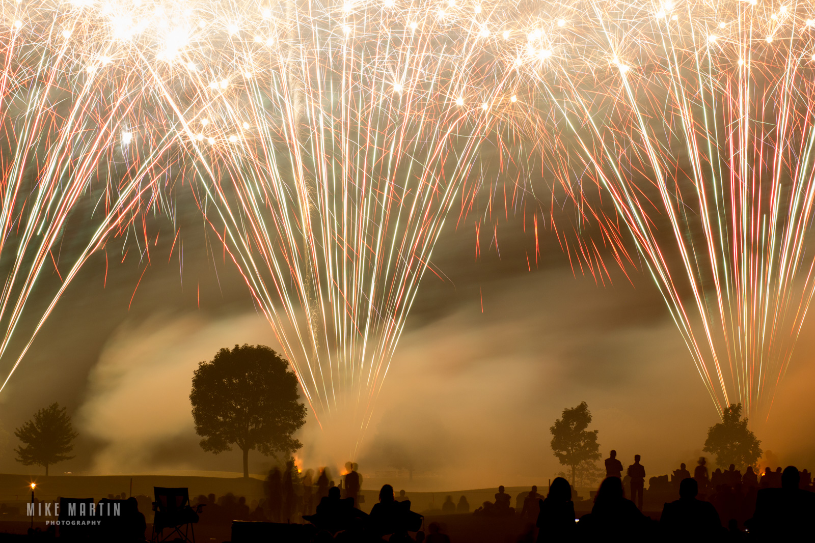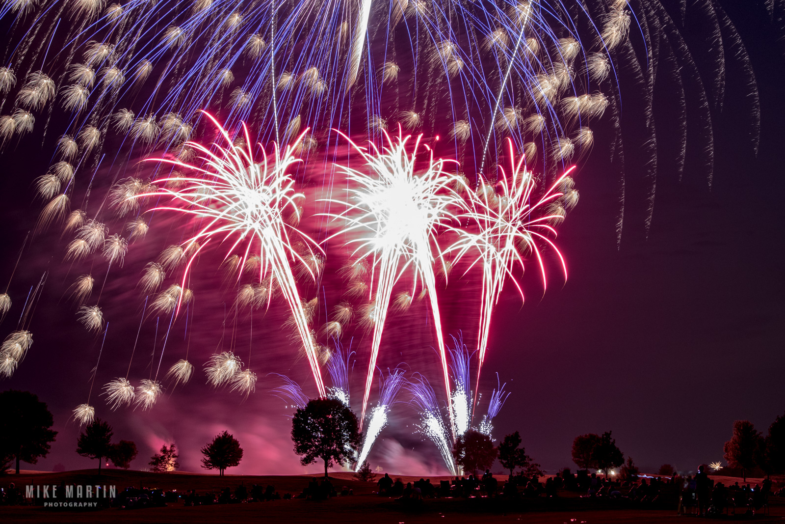 Mike continues, “The real trick to photographing fireworks is capturing the event from the launch, through its initial burst, and all the way through the trail of light and colors afterward. By watching the fireworks and counting you can see that the event of just a single firework can easily be 5—12 seconds.