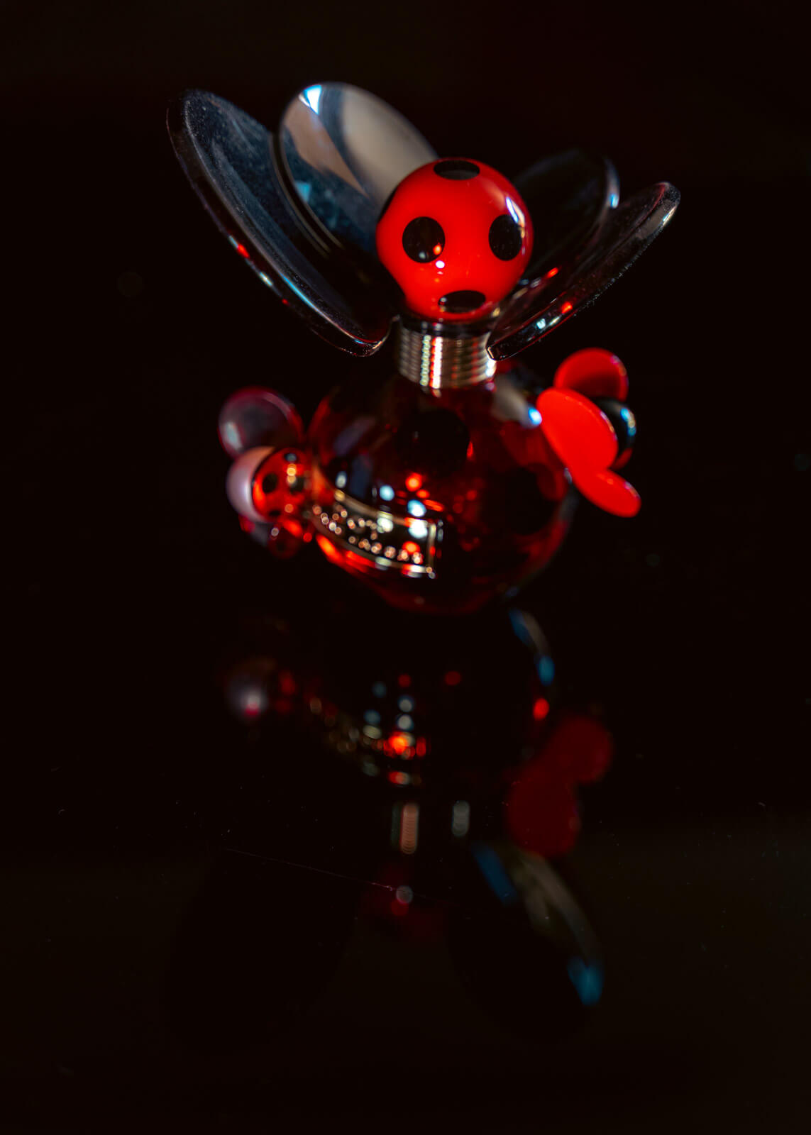 I used a cute little perfume bottle and did a super simple setup on black and then white acrylic sheets. I used the same camera and my Adaptalux LED Lighting pod to light both scenes. One super Dark and Moody and the other Light and Bright. Sure, it’s a simple experiment, but these are often fun to do.