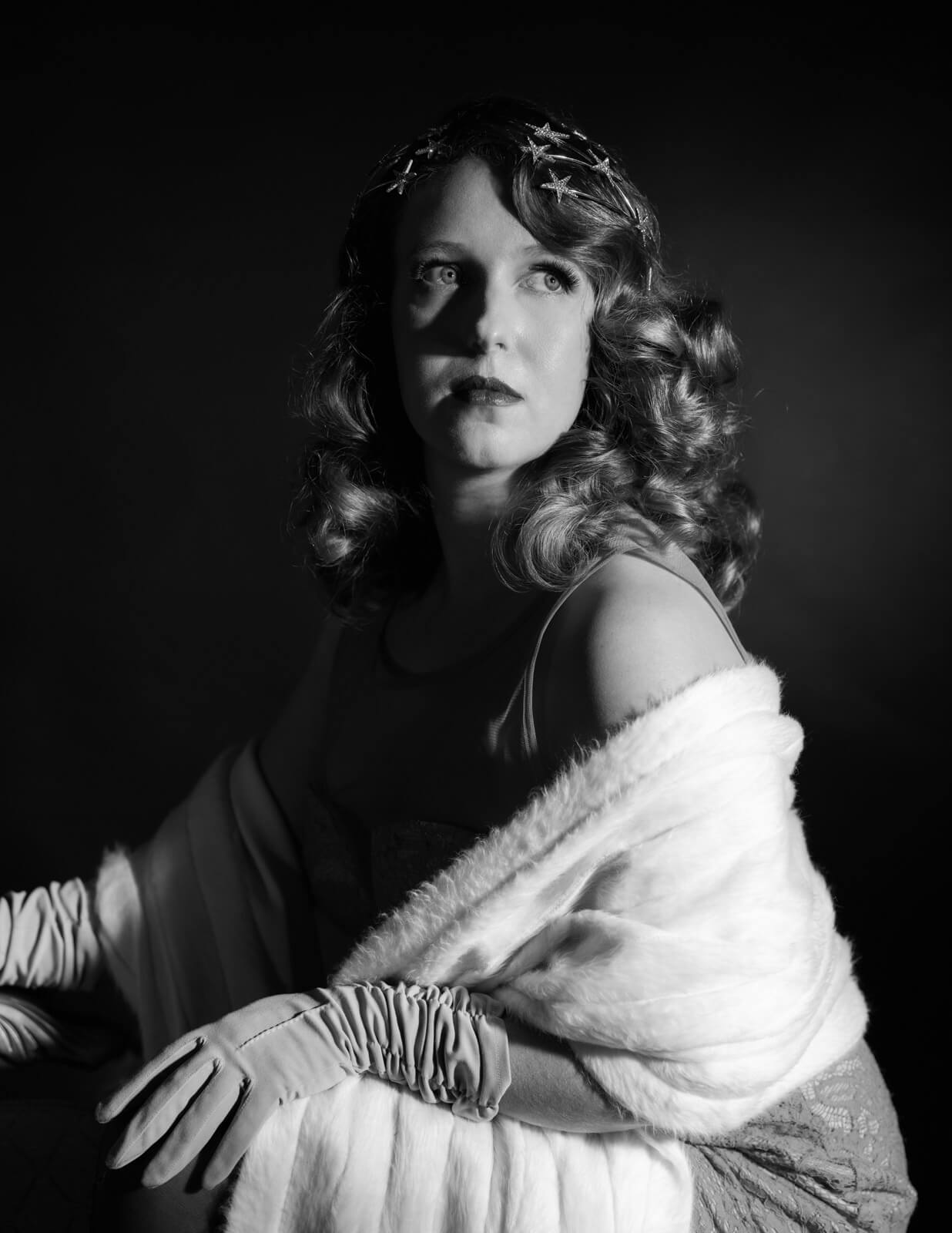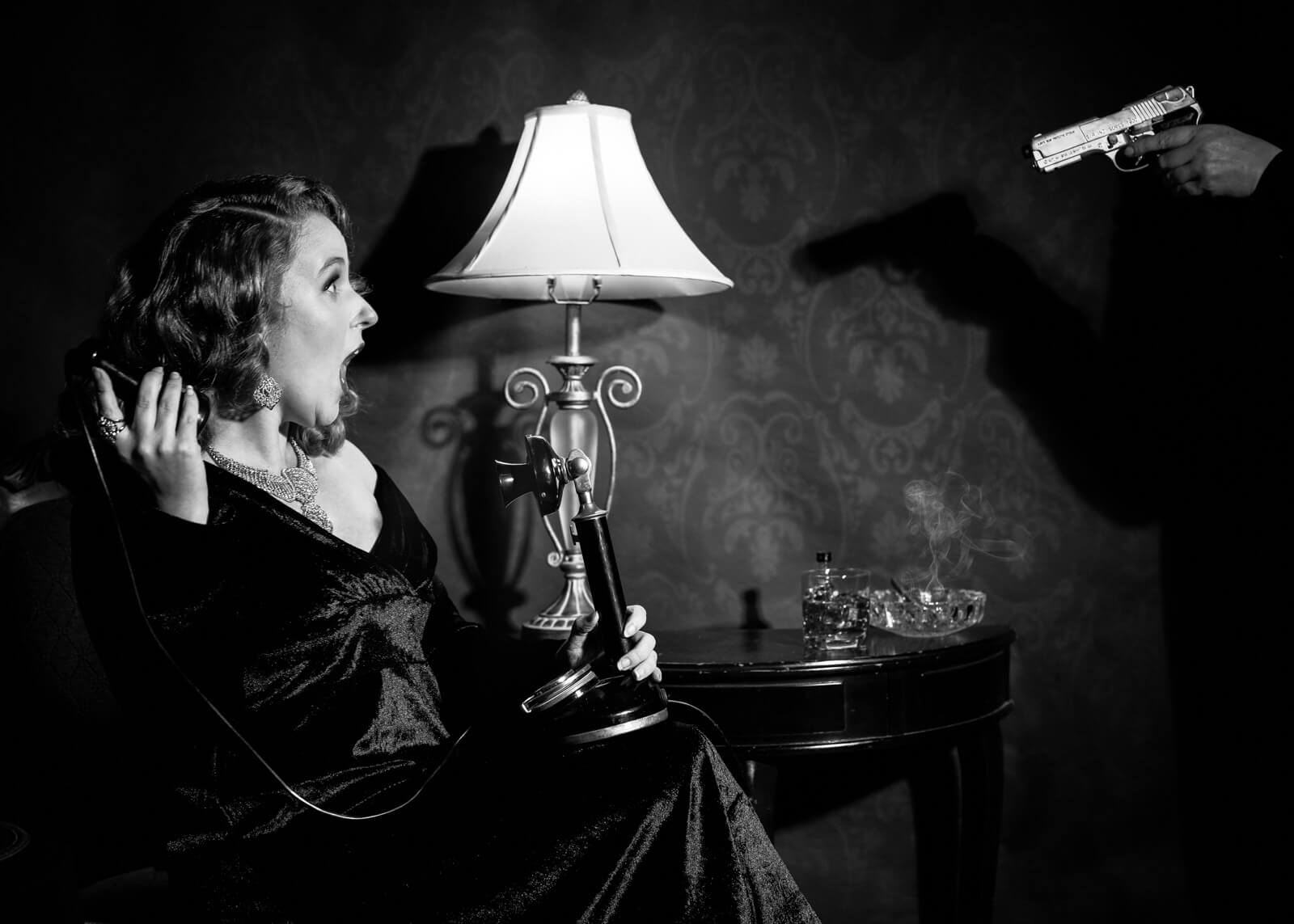 Film Noir’s visual and thematic elements can be translated into portrait photography to create compelling and evocative images. Here’s how I set the scene: