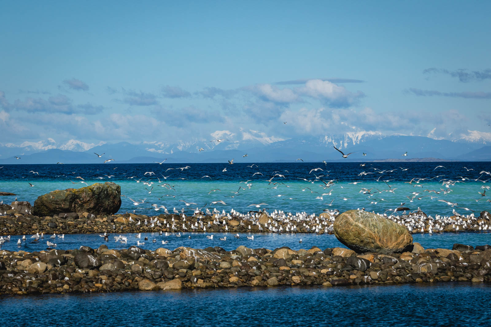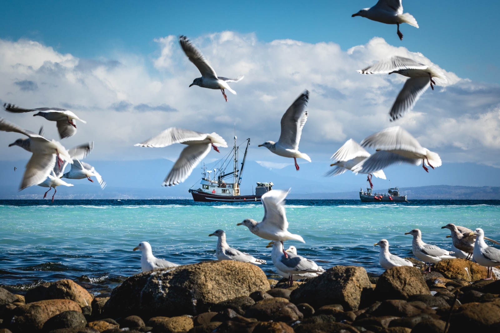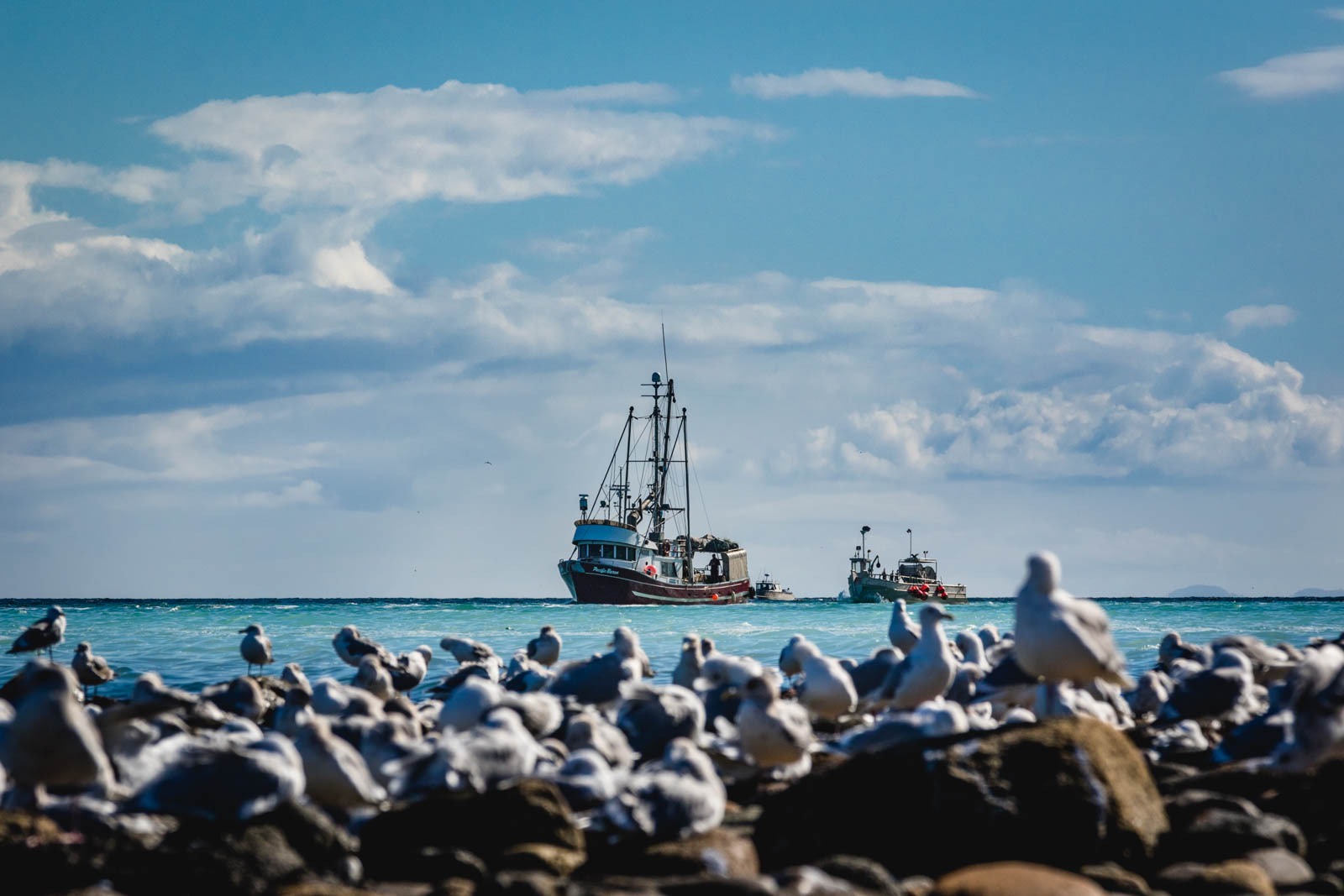 Seagulls lined the shore and filled the air in a cacophony of squawking and pooping. The obnoxious barking and snorting of the sea lions added to the scene as they gorged on a herring smorgasbord.