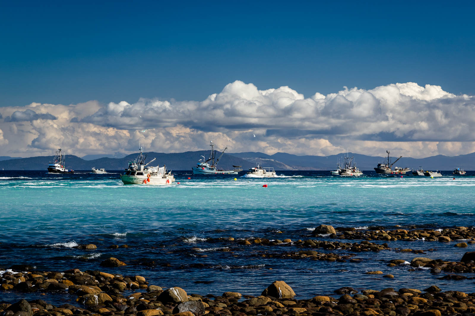 I spent the morning enjoying the scene as it was slowly illuminated with early morning light. Boats were starting to leave the area, a sign that the spawn was moving on. Again, I was grateful for my own luck in timing my shooting. That being said, being prepared, knowledgeable and persistent also paid off.