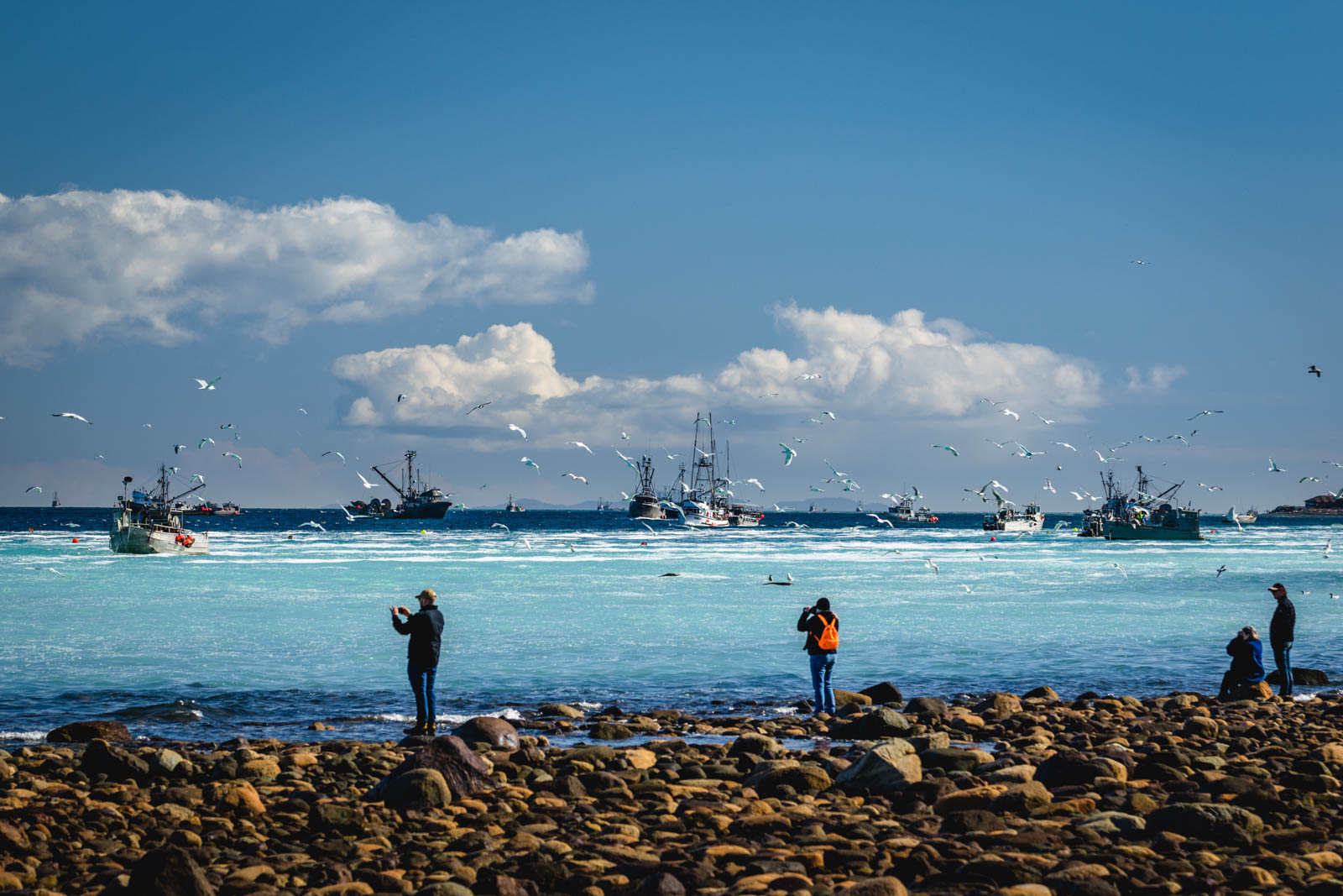 Excited to have a boat for added subject matter, I proceeded to document it working the waters not too far away from me. Eventually, I looked up and saw what looked like a scene out of a movie: About a hundred boats were on the horizon, all heading right to my location. Within half an hour there were boats in every direction and the commercial herring fishing was officially commenced.
