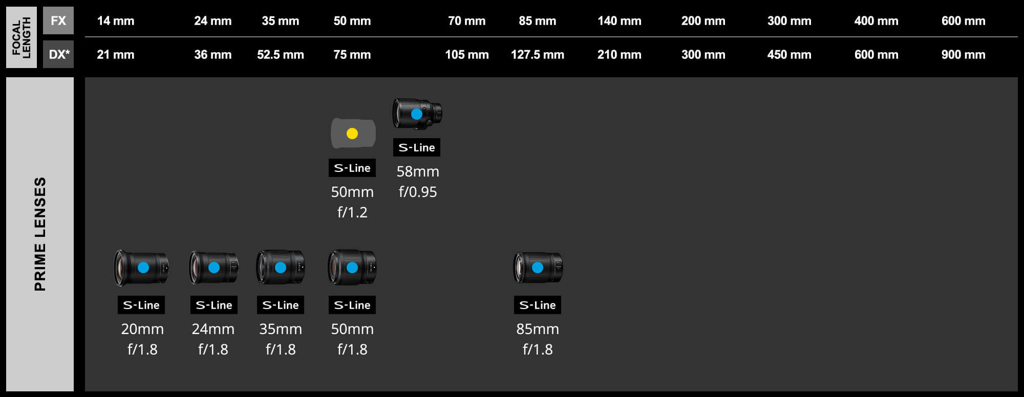 As of February 11, 2020, Nikon has identified an additional 10 lenses to be announced and fully revealed, including 9 full frame lenses. Of these nine full frame lenses, five of them are S-Line lenses.