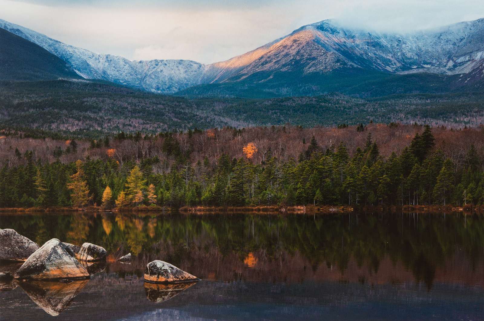 With an image like this, which was printed on Epson Legacy Platine paper, the devil is in the details. Looking at a large print of this and many other landscape images is a different experience than viewing it on a screen. Seeing a large print allows you to pick out all the fine details in the scene. Details such as the branches, the ice on the mountain and the little bit of leftover fall foliage that are floating on the surface of the water. A large print can transport you to a place in a way that I believe is more impactful.