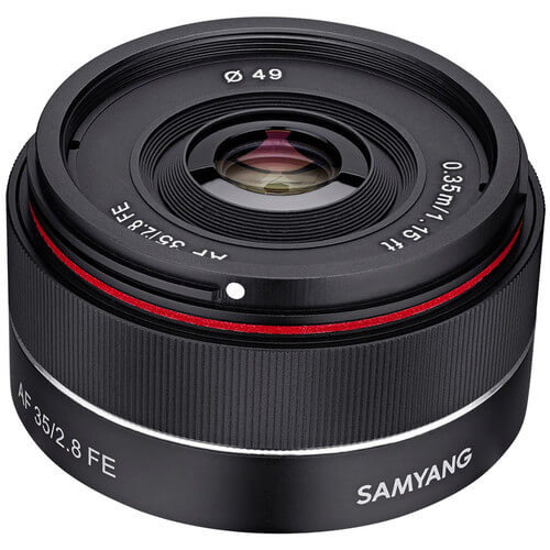 This 35mm f/2.8 pancake lens from Samyang is another stunner in the world of affordable Sony E mount prime lenses. This lens is tiny, which makes it a breeze to slap on your camera and walk around for hours without it becoming a burden. It weighs just 0.18lbs! You’ll barely even feel it on your camera. Don’t think its small size impacts performance either. This lens has fast autofocus motors, distortion, flare and ghosting are controlled very well, and it can even create nice bokeh. Amazingly, this lens costs under $190!