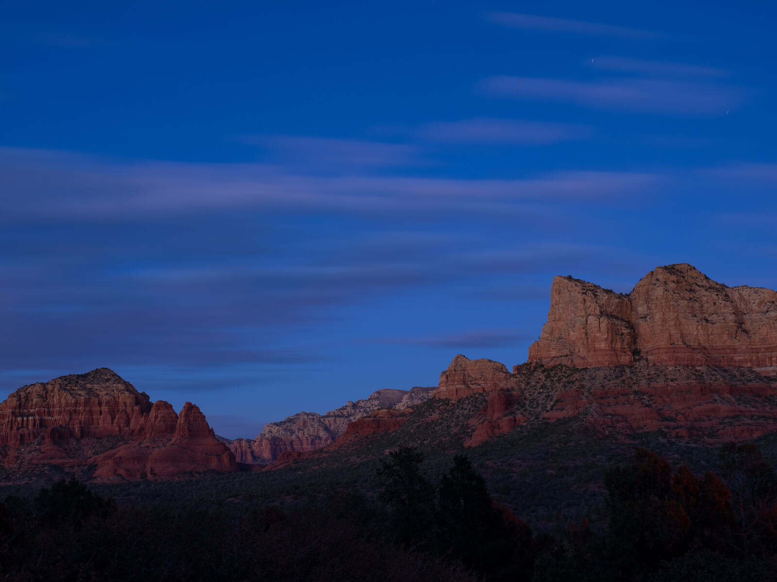Many times, the best landscape images come well after the sun has dropped below the horizon. That was true here as well. As the sun disappeared the red rocks began to glow and show beautiful depths and dimension with low contrast. It’s my favorite time to capture the landscape at its finest.