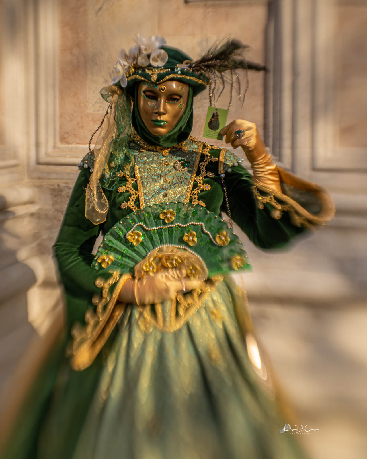 The key to photographing Venice Carnival is model etiquette. This is why you are there. The models have spent several months to a year on their costume. They want you to take their picture. In addition to taking their picture, they want to see their photographs. The props they carry are an important piece of their costume. Make sure you showcase their props. During the Carnival, I discovered that many of the models came from other countries, like Germany, France, Belgium, and even the United States and Great Britain. Many of the models have been doing this for years and several carry business cards with a photograph of their costume. Other information may be their social media contact or email address. They appreciate receiving the photographs.