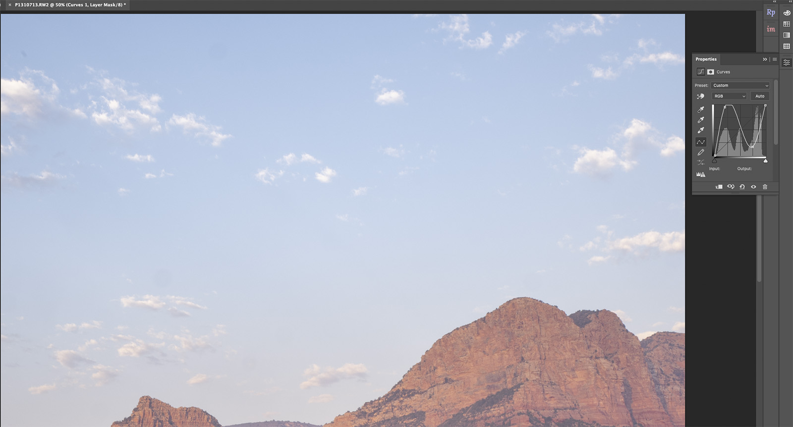 You can look at your images and think the sensor is clean depending upon what subject fills the frame. To test photograph a white wall or a cloudless sky. Use the Curves Adjustment layer described below to check for those “invisible” spots that can come back to haunt you.