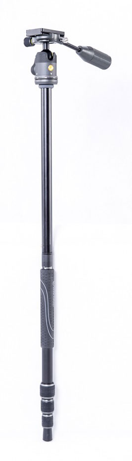 Not only does the head sport the new panning wand, but it also has an integrated monopod. One leg removes and then attaches to the center column and head to be an independent monopod or boom.