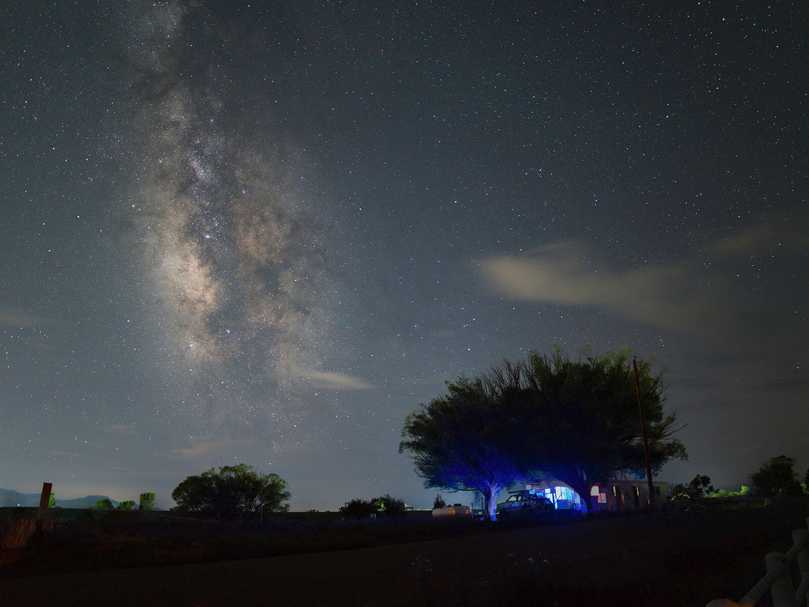 Visiting with a friend in Cortez, Colorado, we decided to try our hand out by the back fence since predictions were for too much cloud cover. Luckily it was high clouds predicted. We hung in there and the clouds parted for a while allowing us a view of the Milky Way. As we were waiting to see the clearing we made images. I always recommend once you are out on scene start photographing and keep photographing until it is time to throw in the towel for the night.
