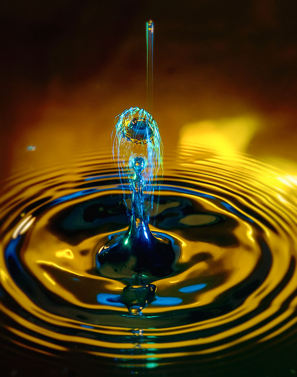 Once again I will warn you that setting up for creating water droplet photos can be addicting. The variability of water drops and possible color combinations using different gels to get totally different looks can keep you occupied for days! See the set up and gear I used to create these images in Water droplet photography, part one.