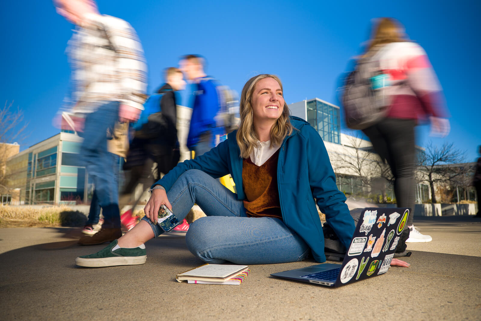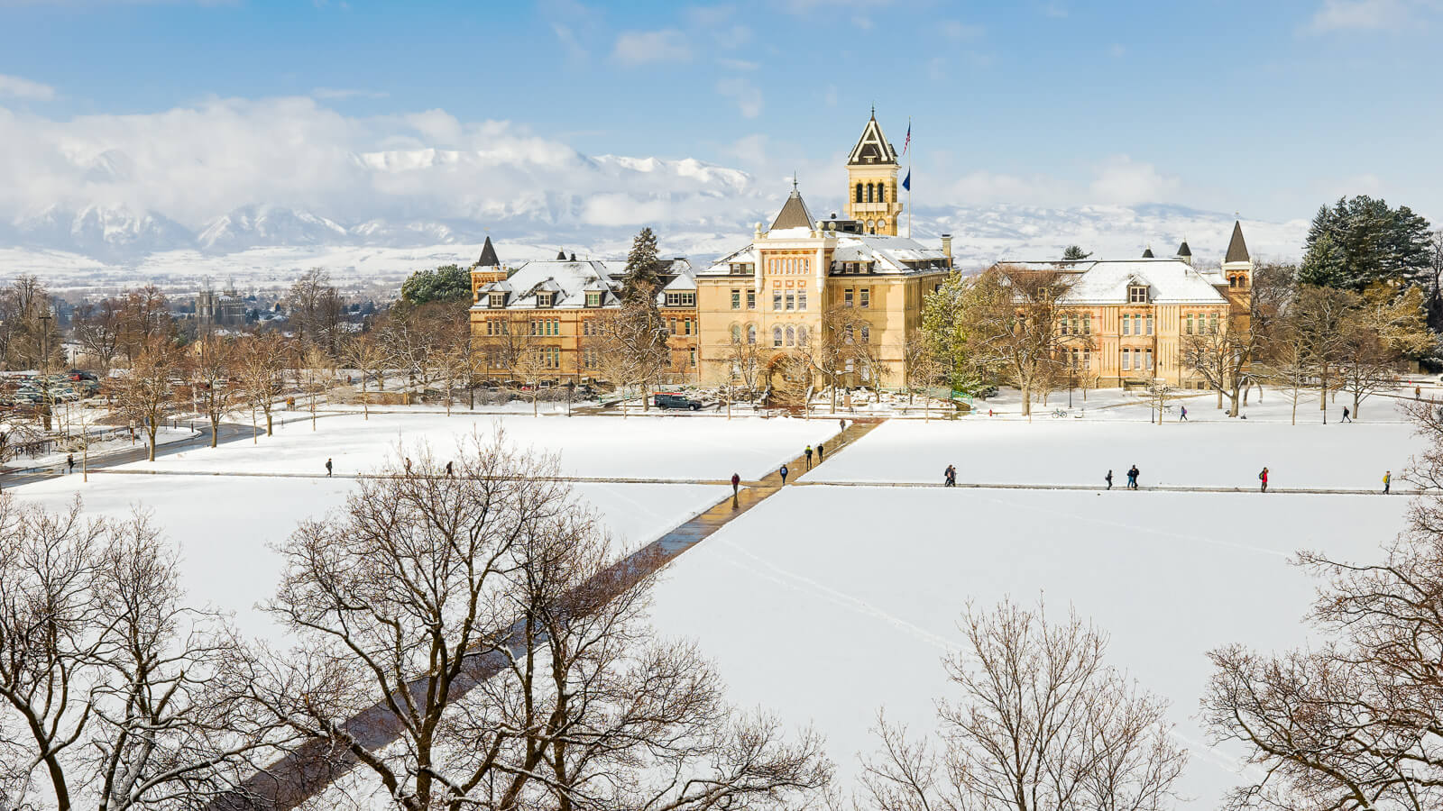 Here I am on top of a building. There’s a glass barrier and a big corner with an angled top. The view of the building across the quad, Utah State University’s Old Main, is excellent from this spot, but getting a tripod in place wouldn’t allow the same view from behind the glass. It’s also an uneven surface, so the adjustable foot screws were absolutely clutch. See the header image.