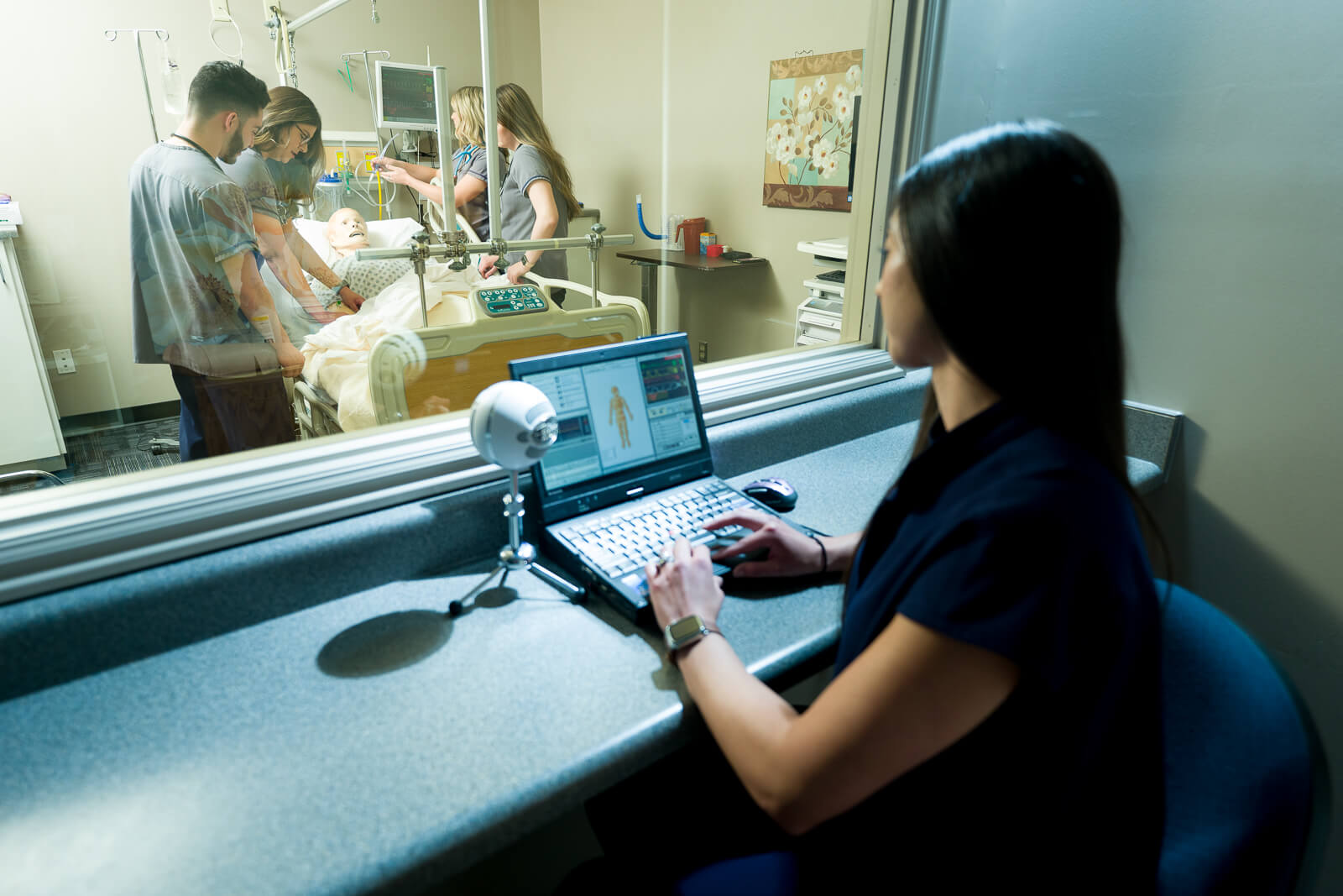 Next, we switched to the simulation lab where teachers can create various situations and watch the students react. The Platypod let me slide my light into the drop ceiling; there was no other place for a light to go! Again, Max or Extreme work equally well here.