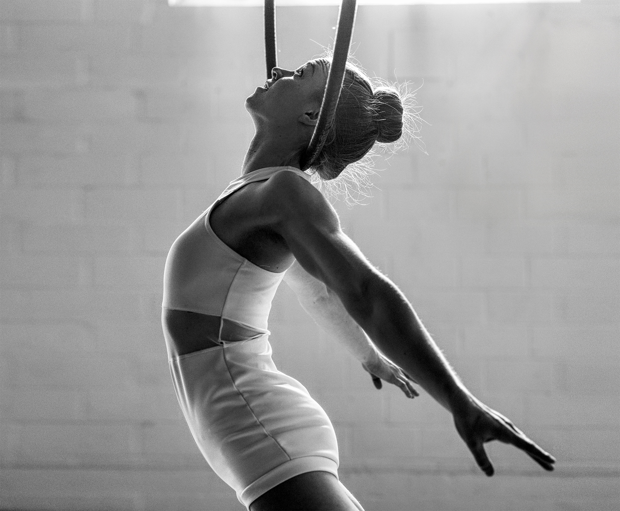 Cloudy sky, soft light coming through the window, this was the perfect afternoon for our first activity. I asked two aerial artists friends to come by and work their magic. I shot most of the photographs backlit — as you can see from the picture below. It would’ve been challenging with my Nikon D750 as the focus sometimes searches too much in those conditions. The a9 never failed to lock on once.