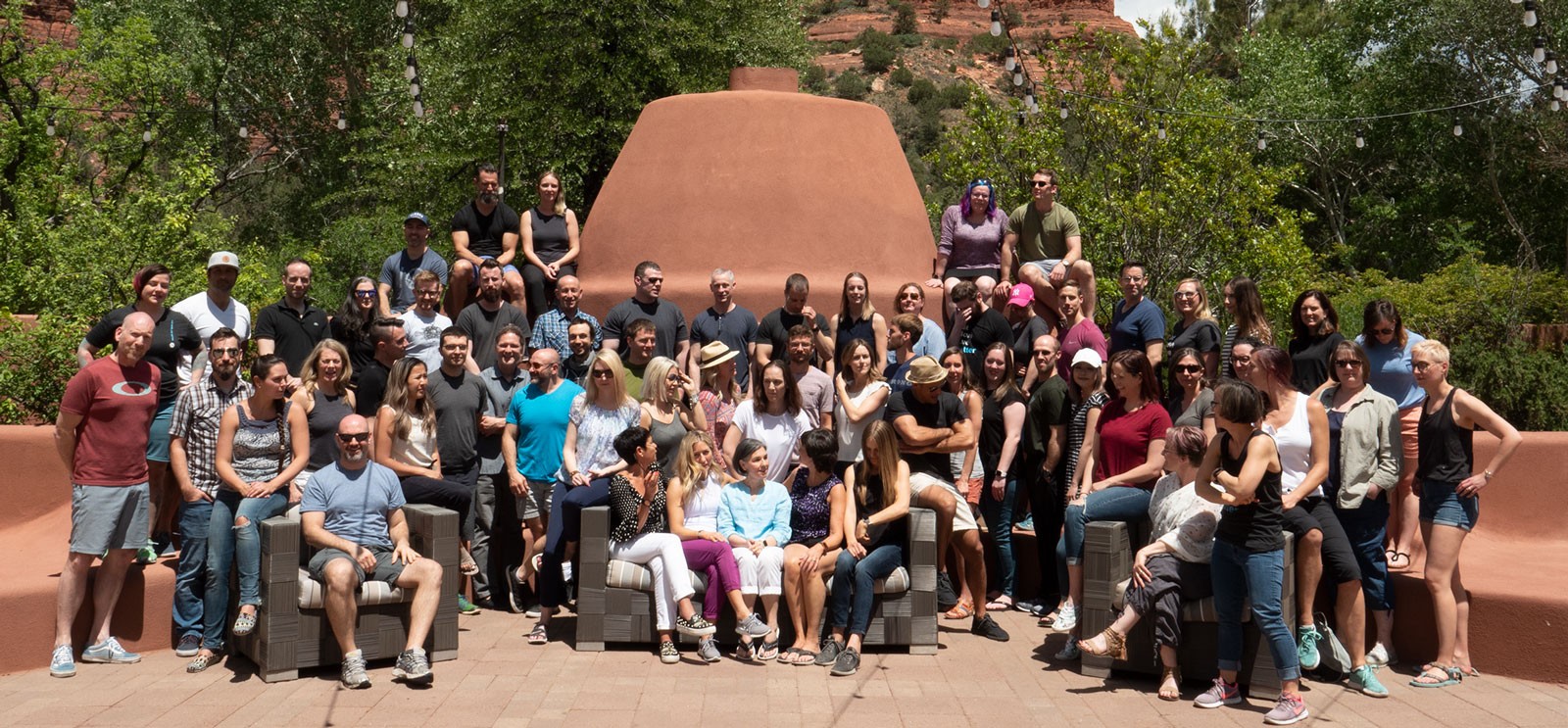 The best way to prevent shadows in outdoor photographs is to not pose your subjects in full sun. Sometimes that isn’t possible. Adding lots of fill light is the answer to making your subjects look more natural. In this case two large mono-light flashes were added to fill the shadows. Makes a huge difference. Learn more here.