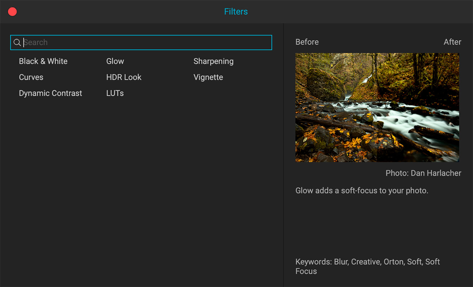 In addition to presets, ON1 HDR also has filters, found under the Effects tab in the right sidebar. These are one-click effects that then offer you some additional adjustments once you select one.
