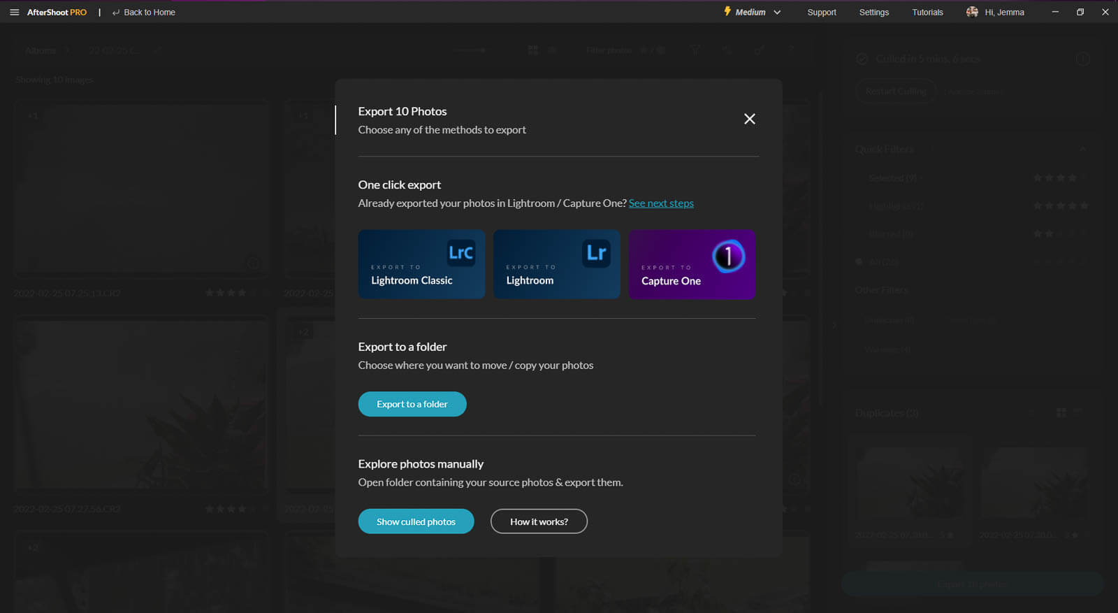 After you have reviewed AfterShoot’s cull, you get options for what you want to do with the files.