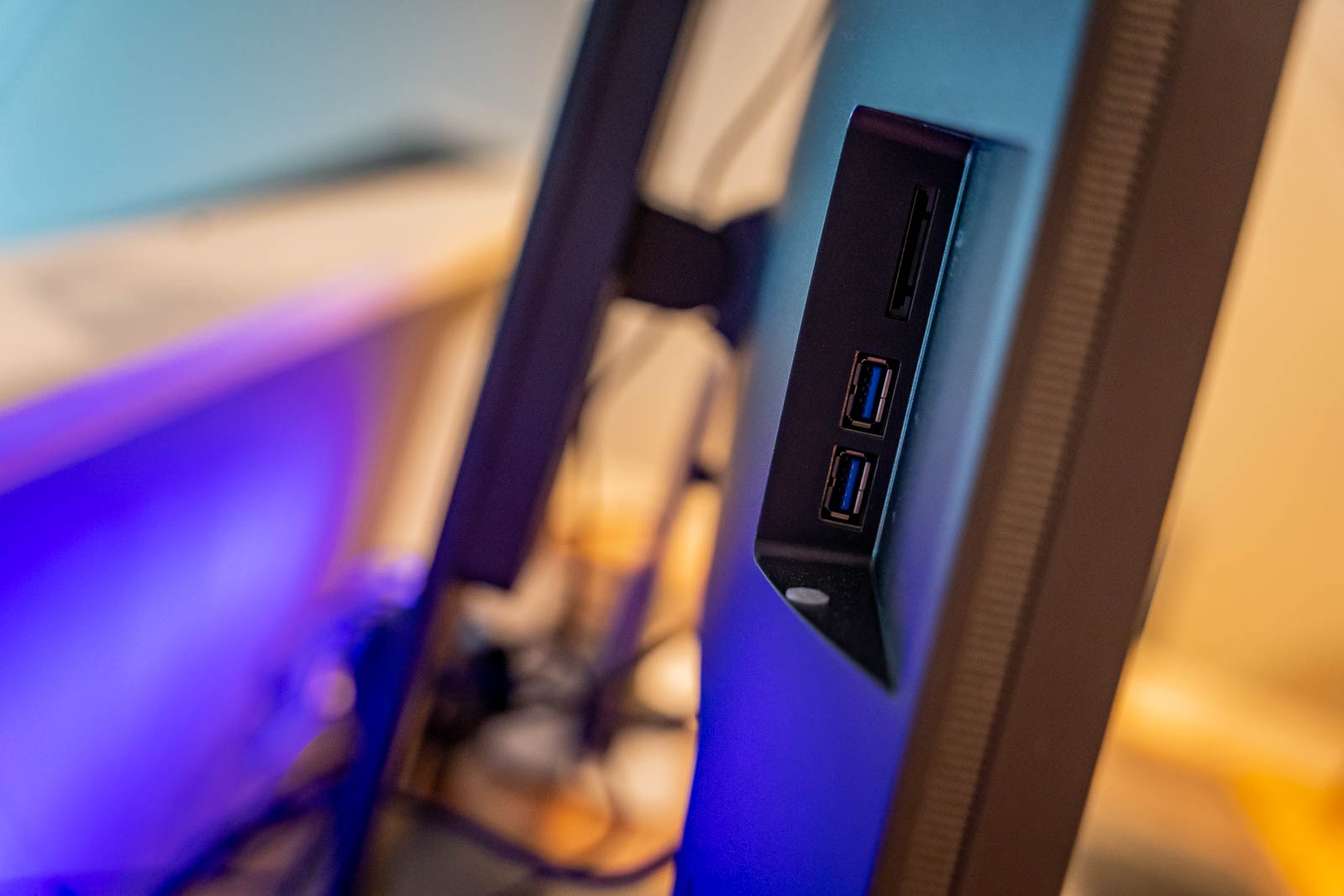 Once it was out of the box, the monitor was what I expected to see. After all, I had seen the SW271 at trade shows, and this was nearly identical to that. The side ports — which had two USB-A ports and an SD card reader — were a great thing to have easy access to.