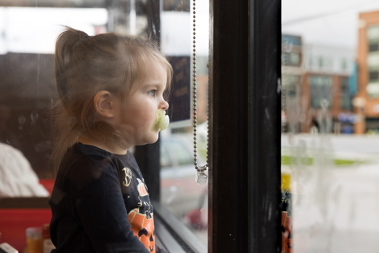 The EOS R6 is quiet or silent, if that’s your choice. This makes it perfect for shooting street and candid photographs like the one of the little girl looking out of a Waffle House window.