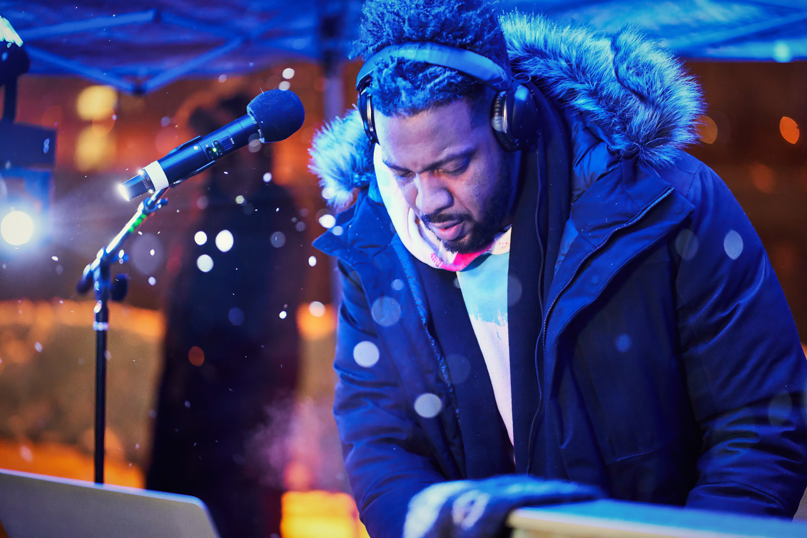 After a recent photoshoot for my client, Downtown Grand Rapids Inc., I decided to try out Topaz Sharpen AI on one of my photos. It was by far my favorite photo of the night, with DJ Adrian Butler (“AB”) spinning the tunes. In 15-degree temperatures, mind you.
