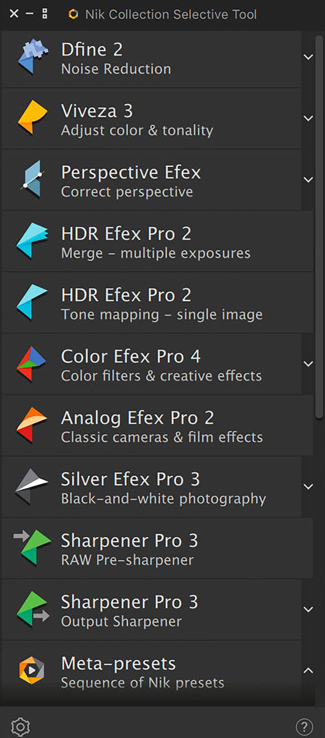 DxO Nik Collection 4 comes in three core plugin suites: Color, Analog and Silver Efex Pro. Additionally, there are several plugins that do film simulations, convert to black and white, sharpen, correct or alter perspective, do HDR, sharpen, or to provide color filters.