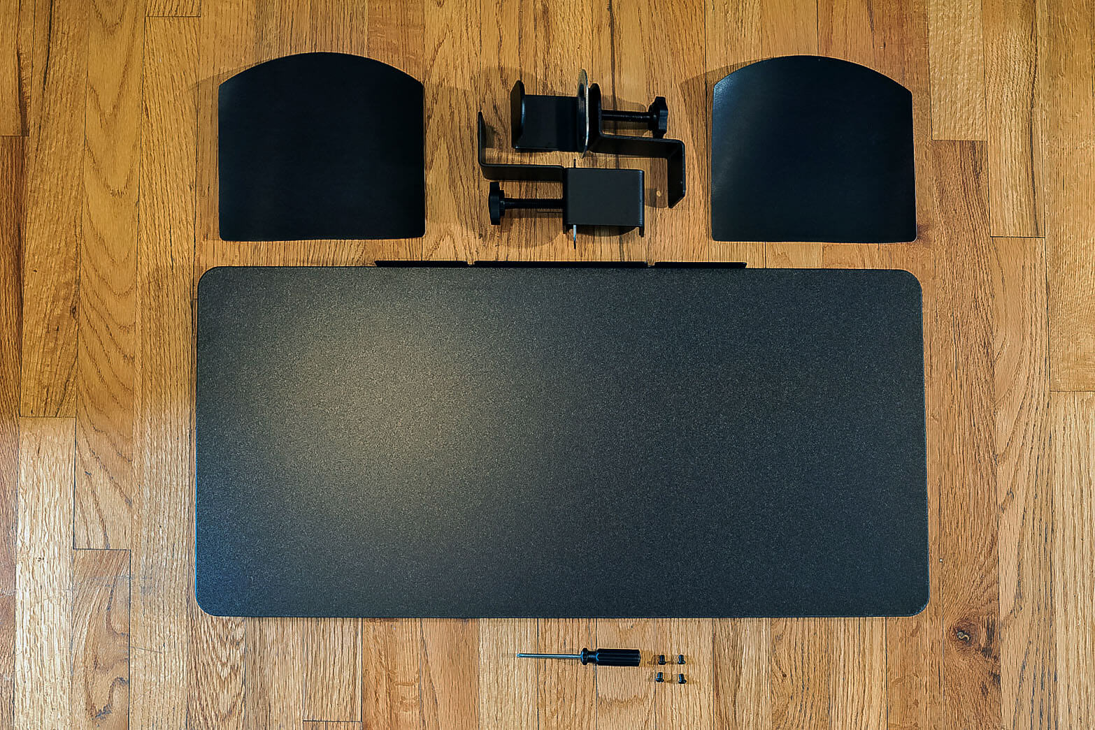 The assembly is easy, consisting of screwing in four screws. Furthermore, it comes with a screwdriver, so you don’t even need tools of any kind. After that, simply clamp it on to the desktop and you’re set!