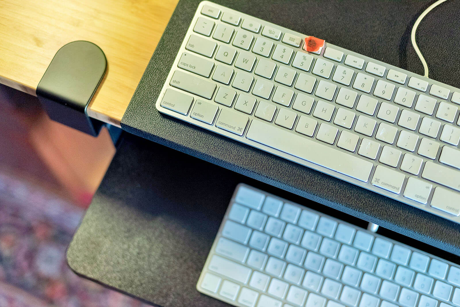 The Flexispot Clamp-on Adjustable Keyboard Tray provides the perfect solution while keeping my desktop clutter free. Well, it’s still cluttered, but not due to having a dual keyboard and mouse setup. However, even if you simply like to scoot your keyboard out of view when not using it, this is an excellent, sturdy option. Since it uses two padded C-clamps, you can easily install it and get straight to work.