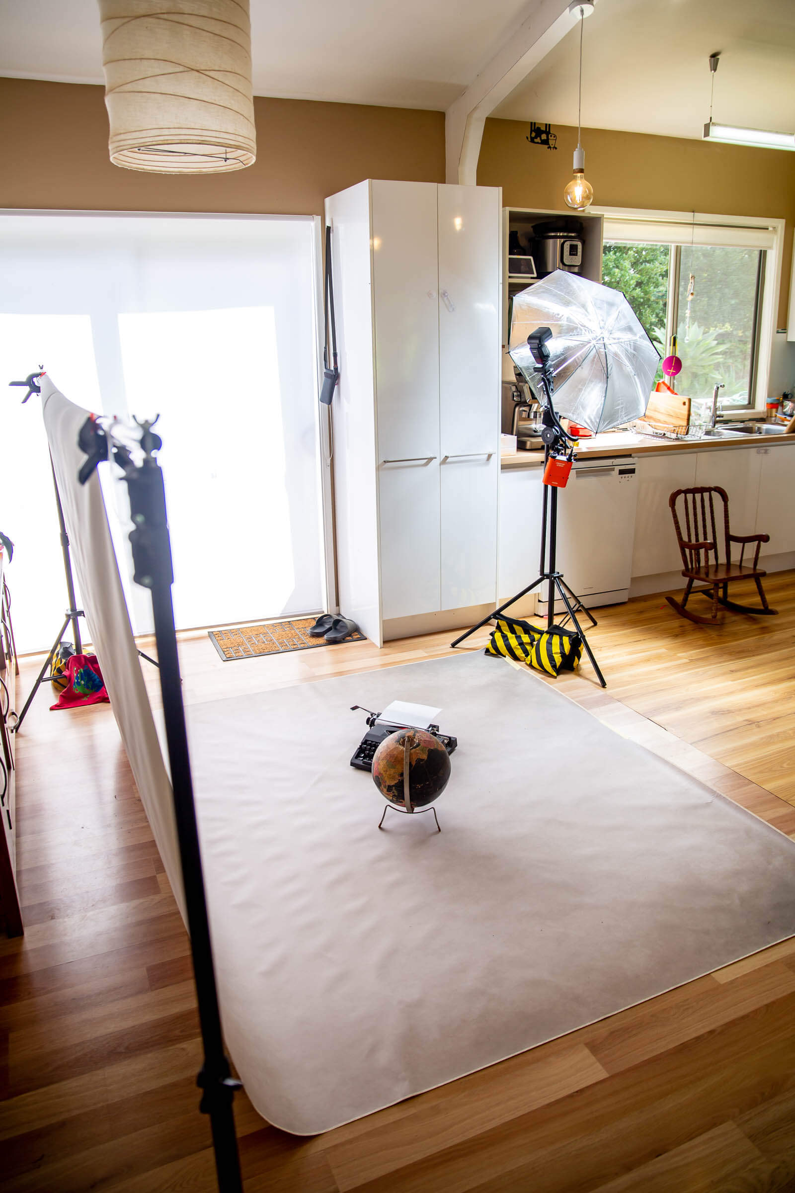When you’re ready to shoot, get your props and assistant on the backdrop, and start shooting.