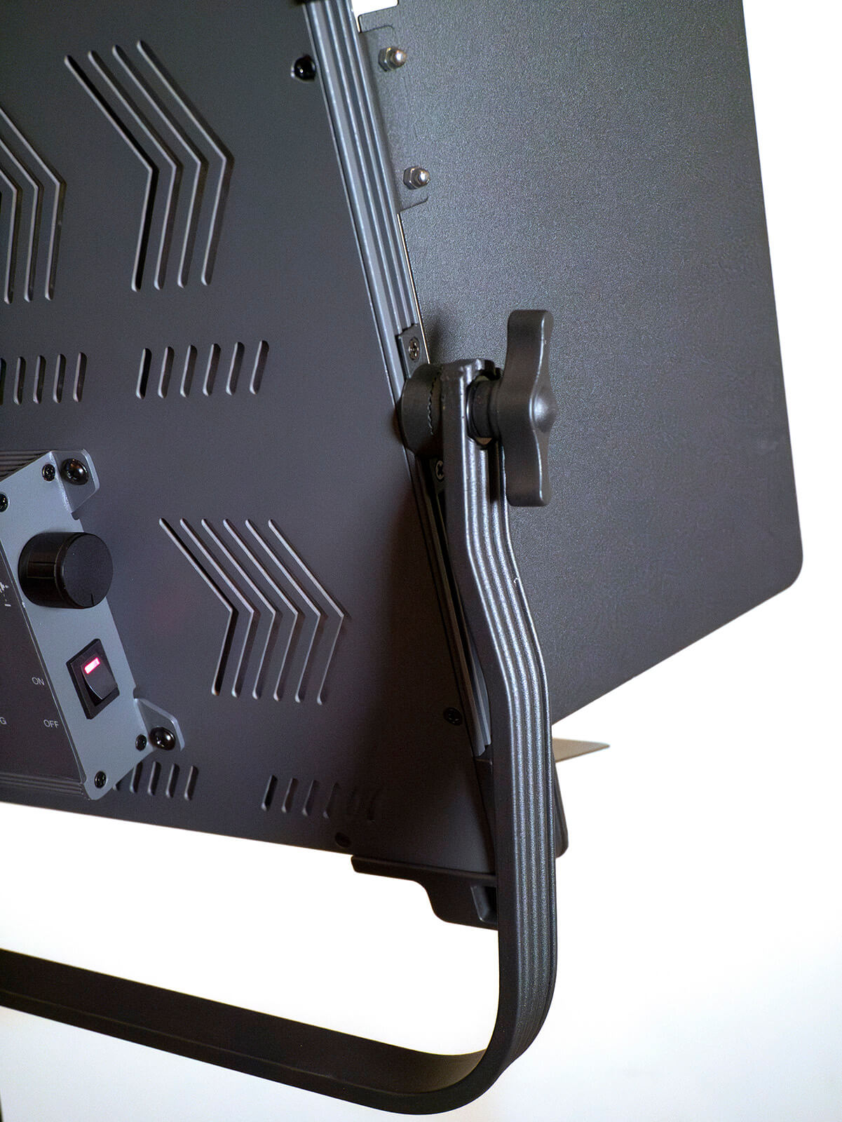 Once the Genaray Twin light is mounted on the light stand setting the angle of the light is solid using metal teeth. Barn doors have the proper amount of friction to stay in place as well. The knob for setting the brightness and the color is small and moves in very small increments. A quick push of the knob as a button and you can quickly toggle back and forth from changing brightness to color. Brightness settings can go to 1%-100% in 1 degree increments. Color goes from 2700K to 6500K.