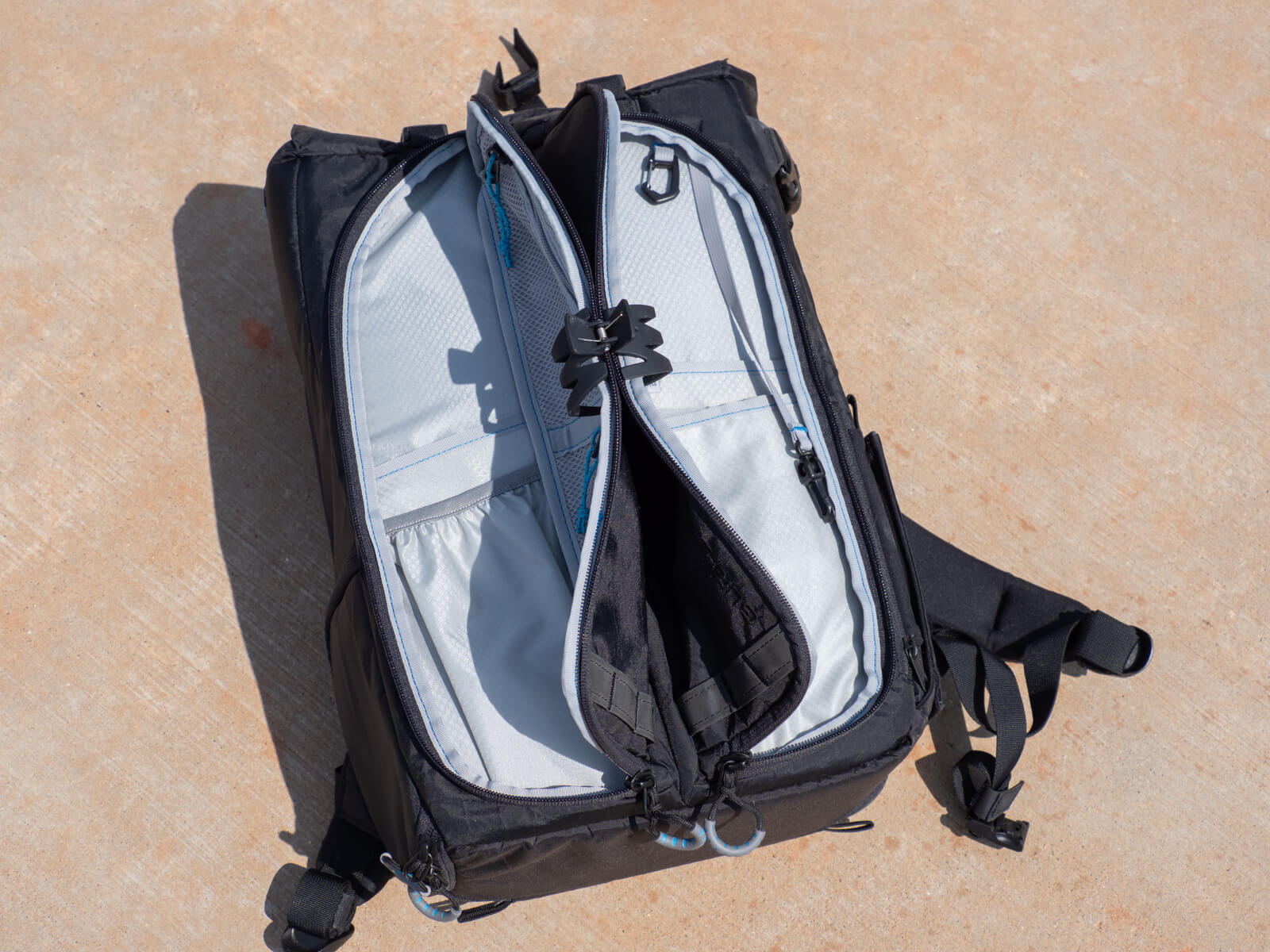 You won’t have any issues with the Fidlock magnetic clasps. All the magnets are strong and snap together with a satisfying clunk. The YKK zippers are nice and smooth for the most part, although I did encounter a few times where the zips would get snagged or caught up. However, I regularly encounter this with any bag that uses YKK zippers. I love how Gura Gear has stitched the main straps to the bag as well as this should eliminate the problem of straps coming loose.