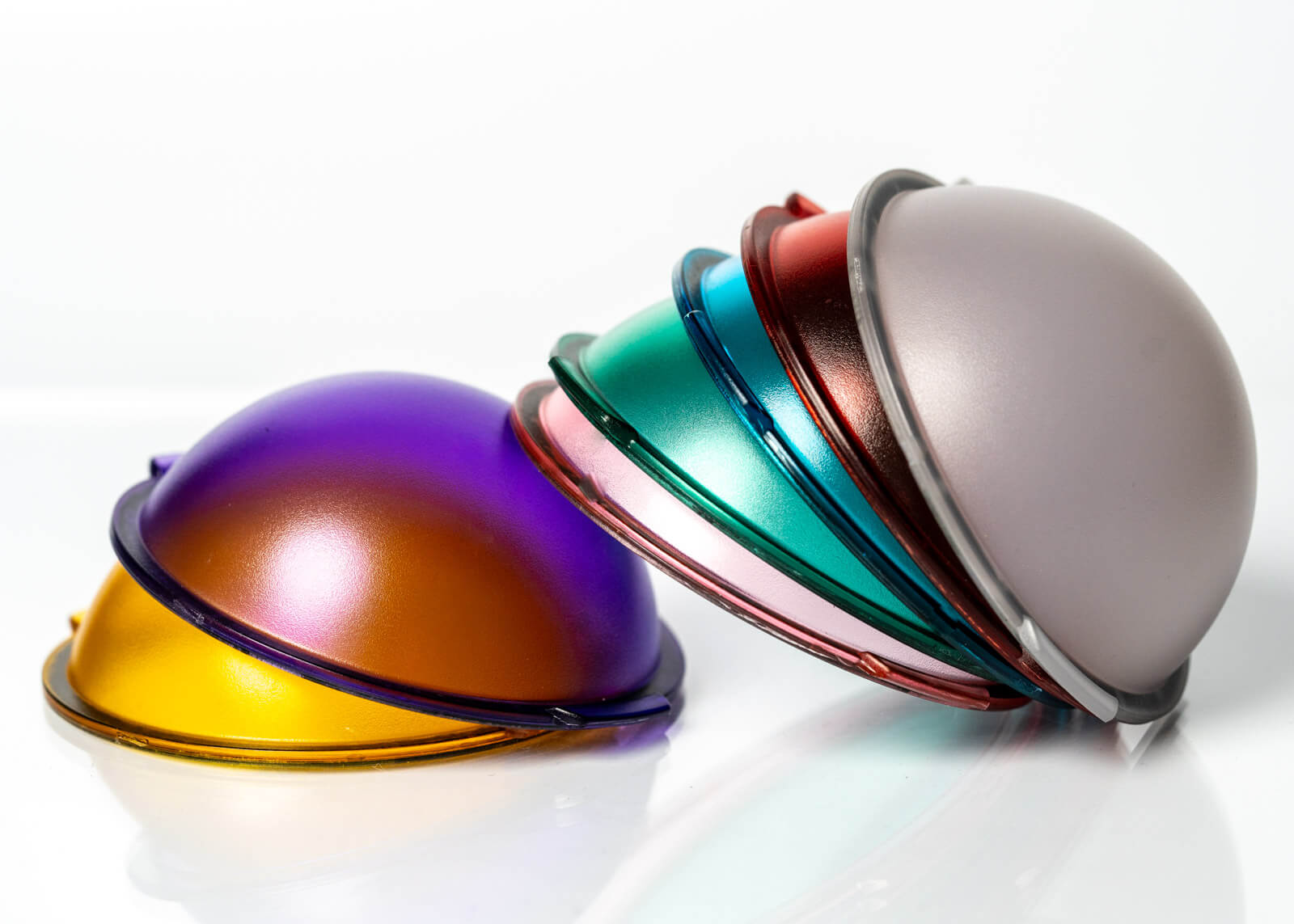 The Harlowe Mini Max comes with a grid, dome diffuser and six dome gels: red, yellow, pink, purple, blue and green.
