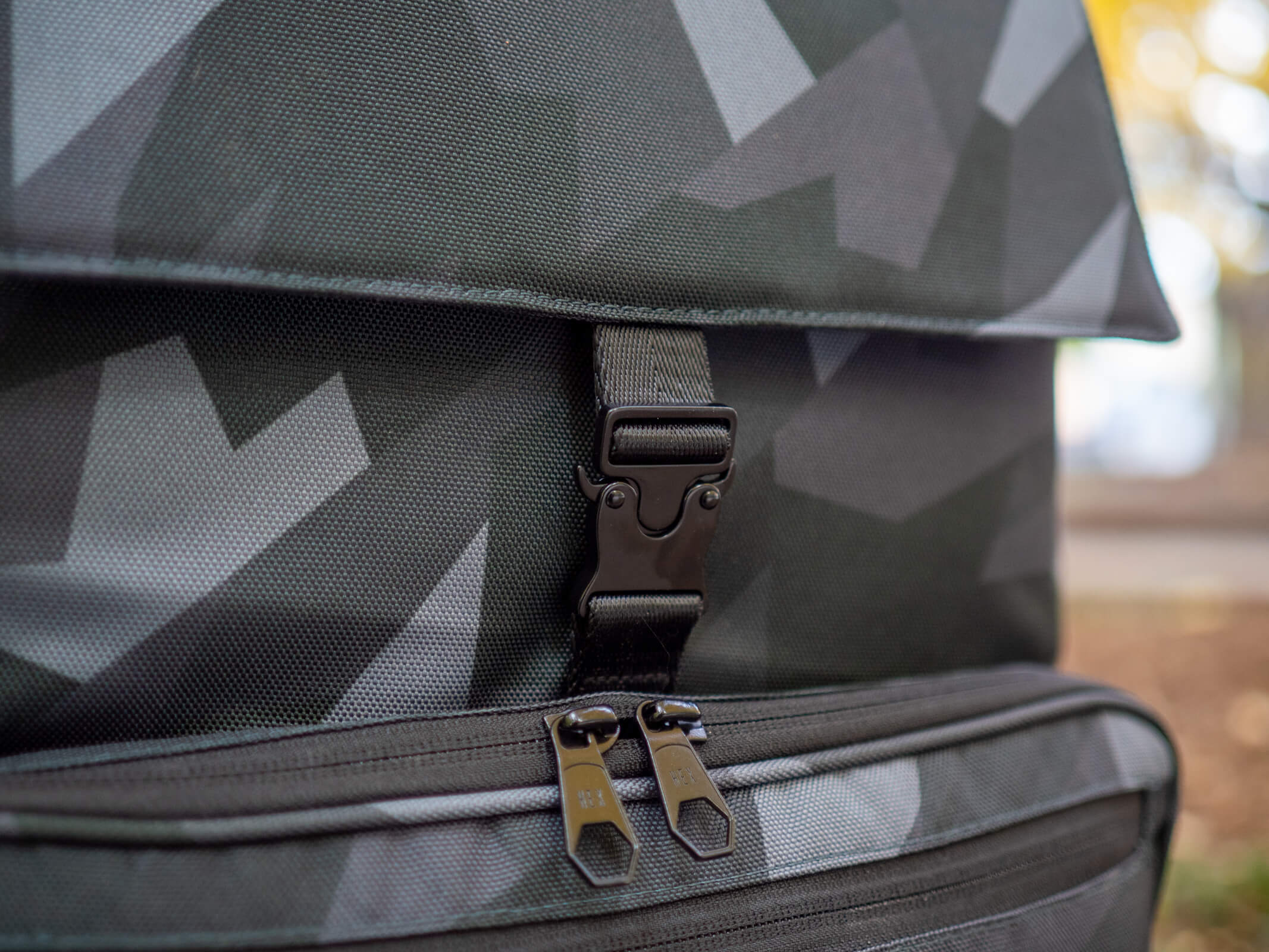 The sternum strap helps keep the bag tight against your upper body, This strap is useful as you’re carrying a lot of weight around. The last thing you want is for the bag to be swinging around. Fortunately, the Hex Back Loader V2 stays quite secure.