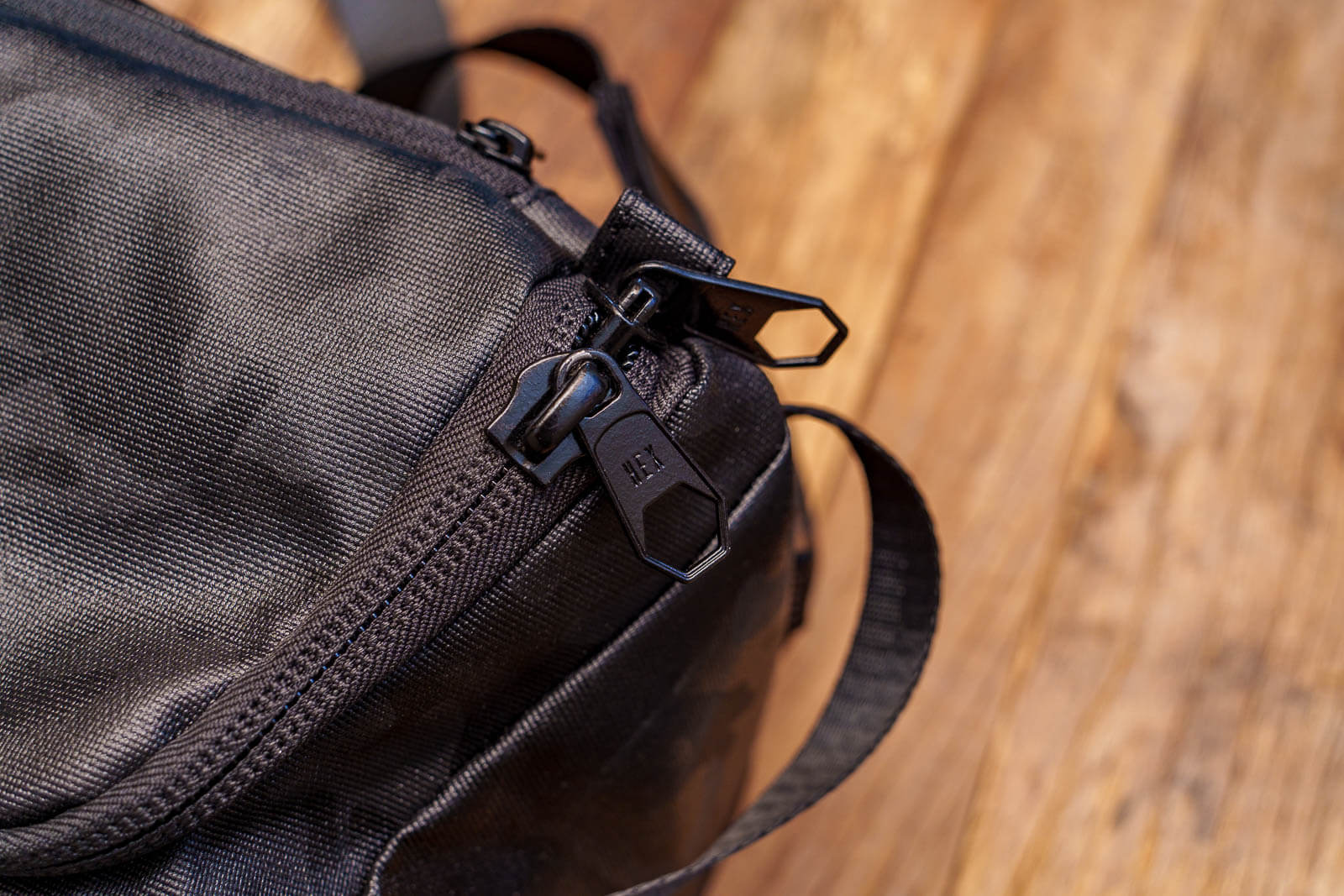 The Hex Ranger Sling comes in a few different colors; I received the Blackout version. It’s also available in a Glacier Camo, Camo and plain Black. The Blackout version features a Camo pattern that’s fully black and dark gray. It’s sleek, and it doesn’t look like a camera bag at all.