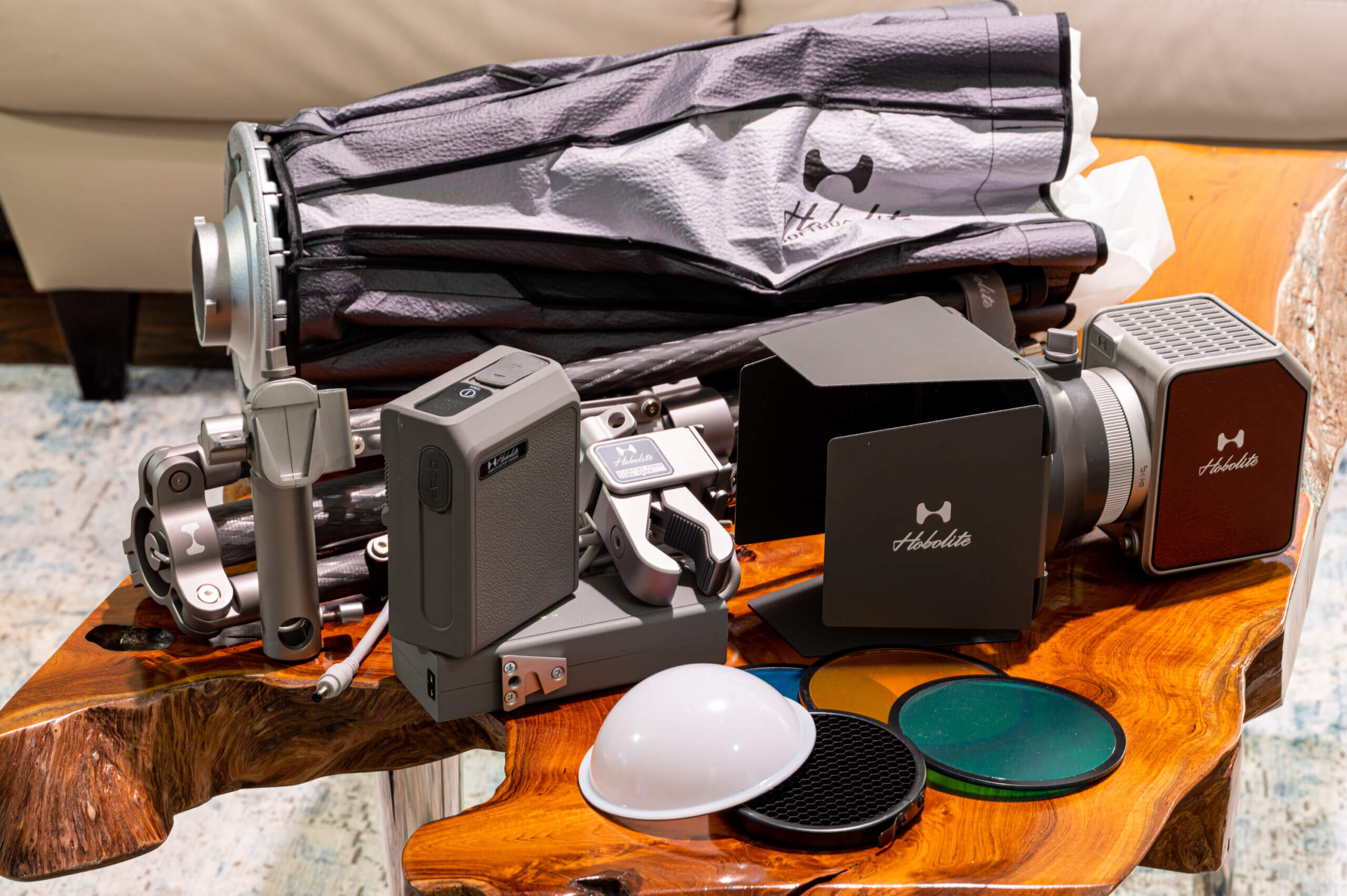 The included battery pack lasts about an hour at full power on the Avant, it’s a nice v-clamp design that doesn’t get in the way and contributes to the simplicity of the system. At any rate, setup doesn’t get much easier or more efficient than the Hobolites.