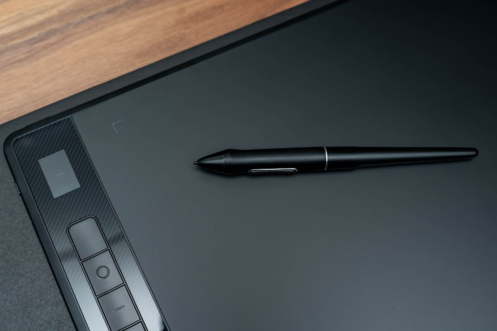 When I first took the Inspiroy Giano out of the box, I was surprised at how sleek the tablet looked. The tablet features a large work surface of 354.4 x 215.9mm (roughly 13.6 x 8.5 inches) and has a glossy black side panel with six programmable buttons and a small LCD display. The buttons are pressed in, meaning that they won’t be accidentally pressed, which is one of my biggest complaints with other tablets I’ve tried.