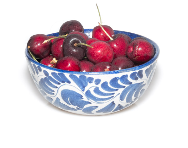 There are different lighting solutions that can be used with the table—natural light with reflectors, studio lights, off-camera flash units, continuous lights on stands, or clip-on lights. Lights can easily be placed on the sides of the table, in the back, and underneath. Studio lights and off-camera flashes will need light stands and modifiers to diffuse the light and to cut down on harsh shadows. The bowl of cherries was photographed with off-camera flash units with diffusers, positioned on either side of the table.