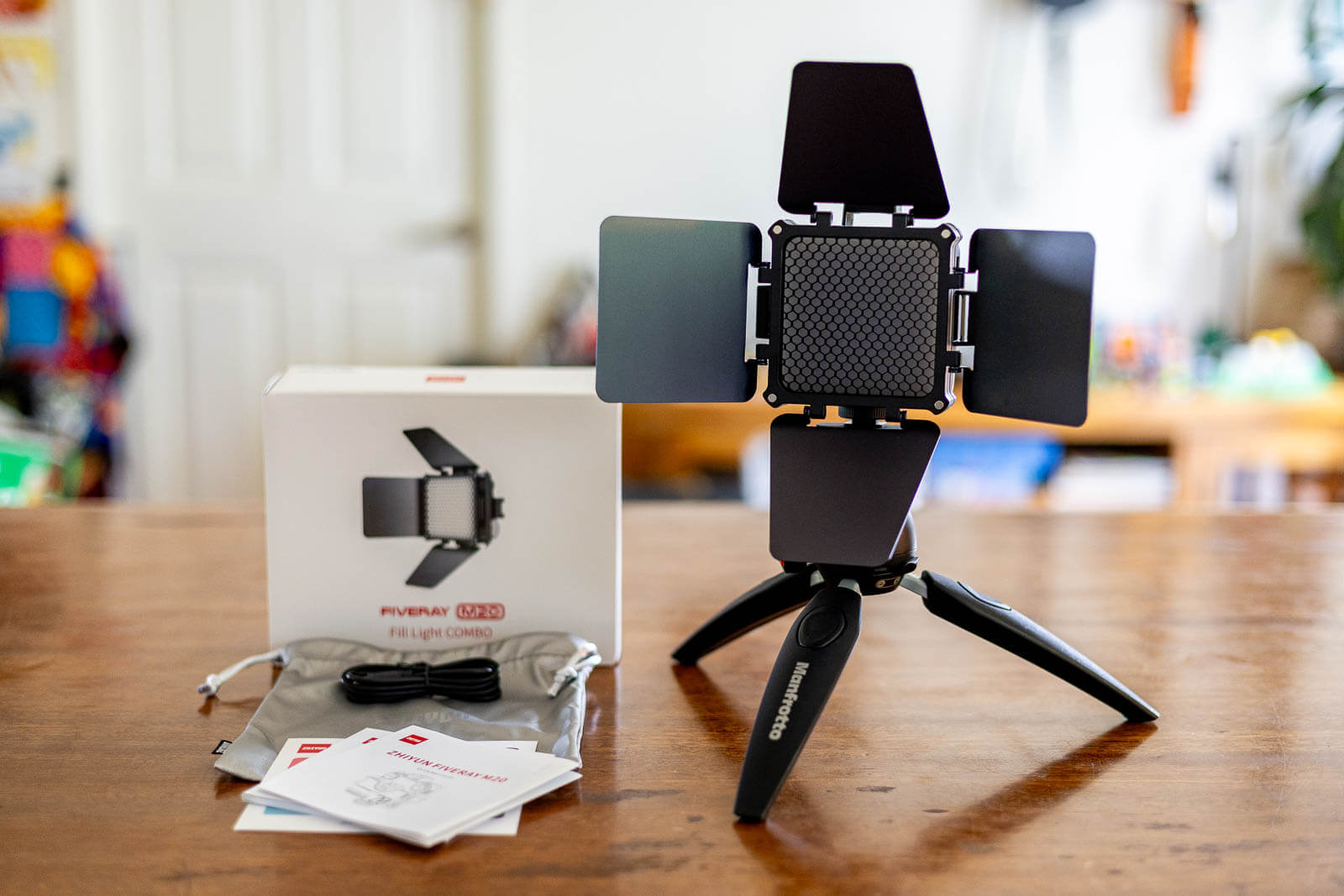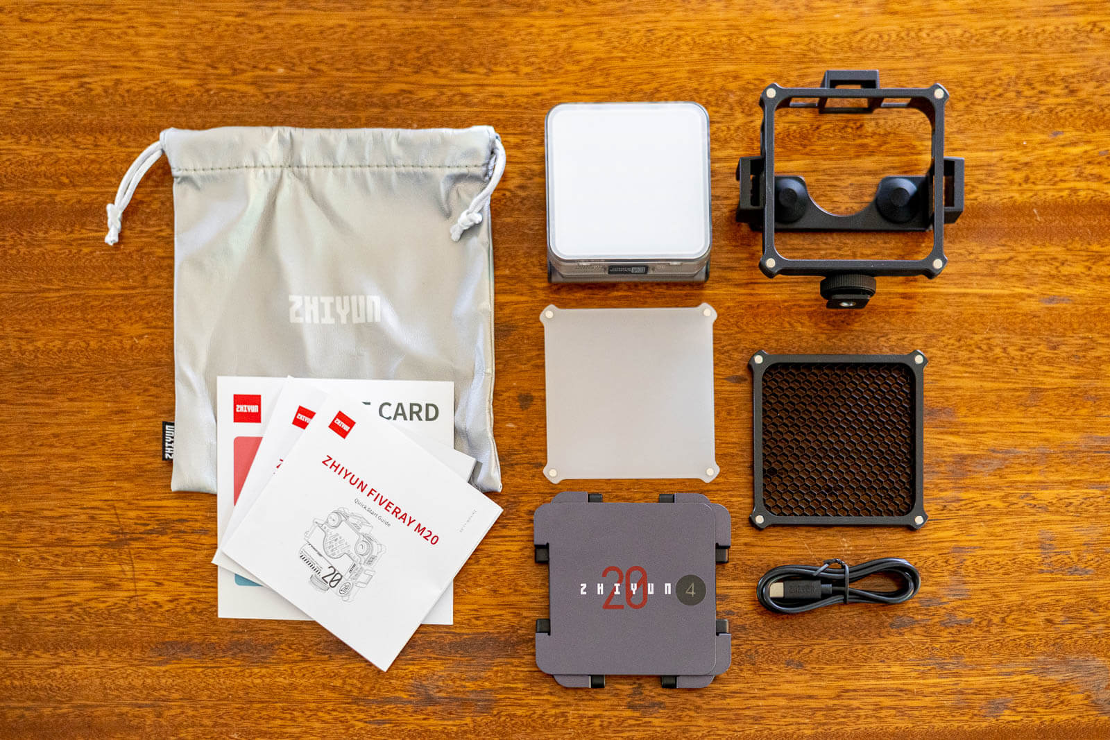 I was provided with the Zhiyun Fiveray M20 in exchange for review. All opinions are my own. I got the Fiveray M20 Combo set, which includes magnetic mount modifiers (details below). It’s also available as a standalone light (no modifiers included).
