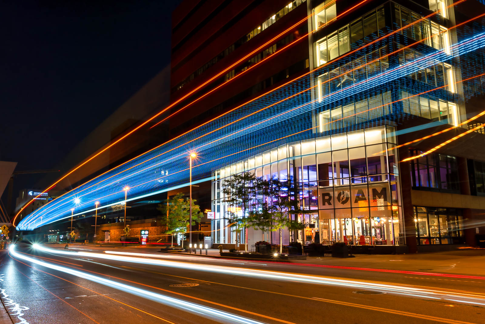 This came in quite handy while photographing a bus that was approaching me at night. I wanted to get the bus light streaks, along with a car, in the frame, which had a lit up restaurant behind. I was able to get it setup with time to spare. I know that if I had used a more traditional tripod, I probably would have missed the capture.