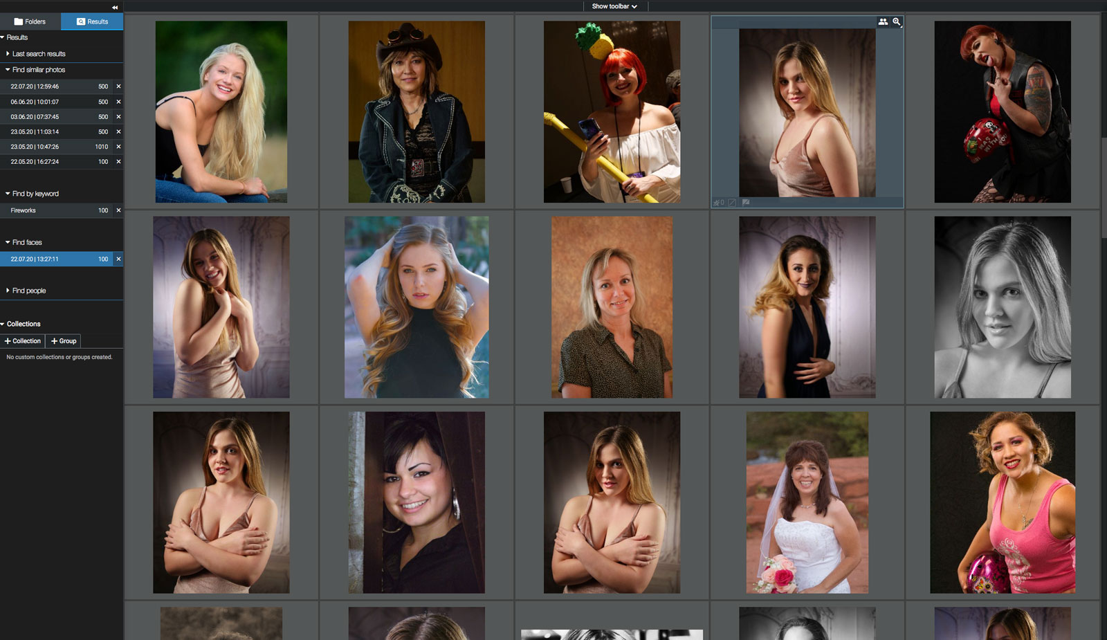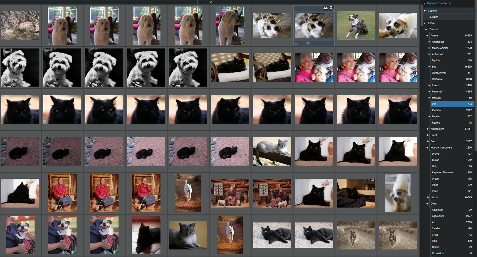 I didn’t realize how much time I was spending trying to locate images until I started using Excire Foto to comb through my files with keywords. Once the keyword selection is made the visual output can be displayed in many formations from a lot of tiny photos to just a few if you need to see more detail.